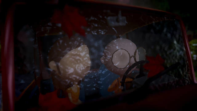 Le fondamenta del gameplay di Last Day of June sono profondamente radicate nei puzzle game con i controlli del personaggio in terza persona. Tornando a June, quando tutte le speranze di inventarci qualcosa sembrano vane e veniamo presi da un’iniziale sconforto, il nostro sguardo si ferma su un quadro, un pontile in riva al lago, soleggiato e caratterizzato da quei colori unici che solo un tramonto può dare. Eccolo finalmente, è deciso. Carl riceverà lì il suo regalo custodito con tanto amore. Nel frattempo, Carl si sveglia dal sonnellino pomeridiano e si mette alla ricerca di June. In questo frangente, possiamo osservare come il mondo all’esterno della nostra casa si rifaccia all’architettura rurale belga/francese, dando quel tocco di unicità e familiarità al tutto. Cortesemente, una vicina ci viene a riconsegnare un apriscatole, che probabilmente le avevamo prestato, e lo disponiamo subito in cantina, luogo di pittura della nostra June. Uno dei tocchi artistici dati all’opera è la mancanza di dialoghi, rimpiazzati da suoni molto particolari che fuoriescono dalle bocche dei nostri pittoreschi personaggi. Una scelta che strizza l’occhio a titoli come Okami e Tearaway che non possiamo non apprezzare. Finalmente, ci ricongiungiamo con June, la quale, tutta entusiasta, ci invita a prendere la macchina per andare proprio lì, a quel pontile. La narrazione, meravigliosamente intrecciata, ci riporta all’istante dove eravamo rimasti, ora perfettamente comprensibile e ricco di significato. Il momento fiabesco viene purtroppo interrotto dal frastuono di quello che sembra essere un imminente temporale. Una volta in auto, ne prendiamo il controllo (in tutti i sensi, dato che la sezione di guida è stata resa giocabile), e ci dirigiamo verso casa. Una sequenza ci fa vedere come l’auto imbocca una galleria, le cui tenebre la inghiottono pian piano, e nel contempo appare il titolo del gioco, come nelle migliori introduzioni. Sembra finita, eppure c’è un’ultima ed importante sezione che ci viene mostrata. Carl si risveglia di nuovo a casa, ma c’è qualcosa che non va. I colori, un tempo accesi e decisi, sono stati sopraffatti da toni freddi e cupi e la poltrona di June è vuota. Siamo soli. A farci compagnia, però, c’è qualcun altro, o per meglio dire, qualcos’altro. Una sedia a rotelle. E’ facile capire che il nostro viaggio di ritorno a casa non è stato dei più fortunati. La tristezza permea tutta la casa e Carl stesso, che a fatica si fa accogliere dalla sua nuova compagnia di vita, dirigendosi poi in cucina. Ha fame. Sì, quello che gli serve è proprio un bel barattolo ricco di leccornie. Nonostante i suoi sforzi, il contenitore non ne vuole sapere di aprirsi. Gli servirebbe una mano. Certo, l’apriscatole, quello che recentemente ci ha consegnato la nostra vicina. Sì ma dov’è? Proprio lì, in quel luogo dal quale si era ripromesso di stare lontano, l’angolo di pittura della sua June. L’idea non lo rende contento, anzi tutt’altro. Troppo dolorosi i ricordi, troppo intensi per volerli risvegliare. Eppure, Carl si fa forza ed entra nella stanza. Tutto sembra andato per il meglio, con gioia troviamo immediatamente il nostro apriscatole. Non c’è più bisogno di restare. Mentre stiamo per lasciarci finalmente alle spalle quel luogo di dolore, un colpo d’aria fa cadere un telo che ricopriva uno dei tanti quadri di June, un autoritratto per giunta. In quel momento, tutte le emozioni ritornano con una potenza inaudita, come un pungo nello stomaco, e appare in sovra impressione il comando “ricorda”.