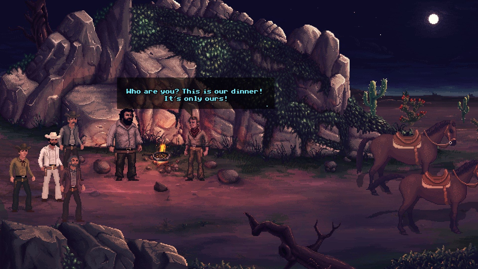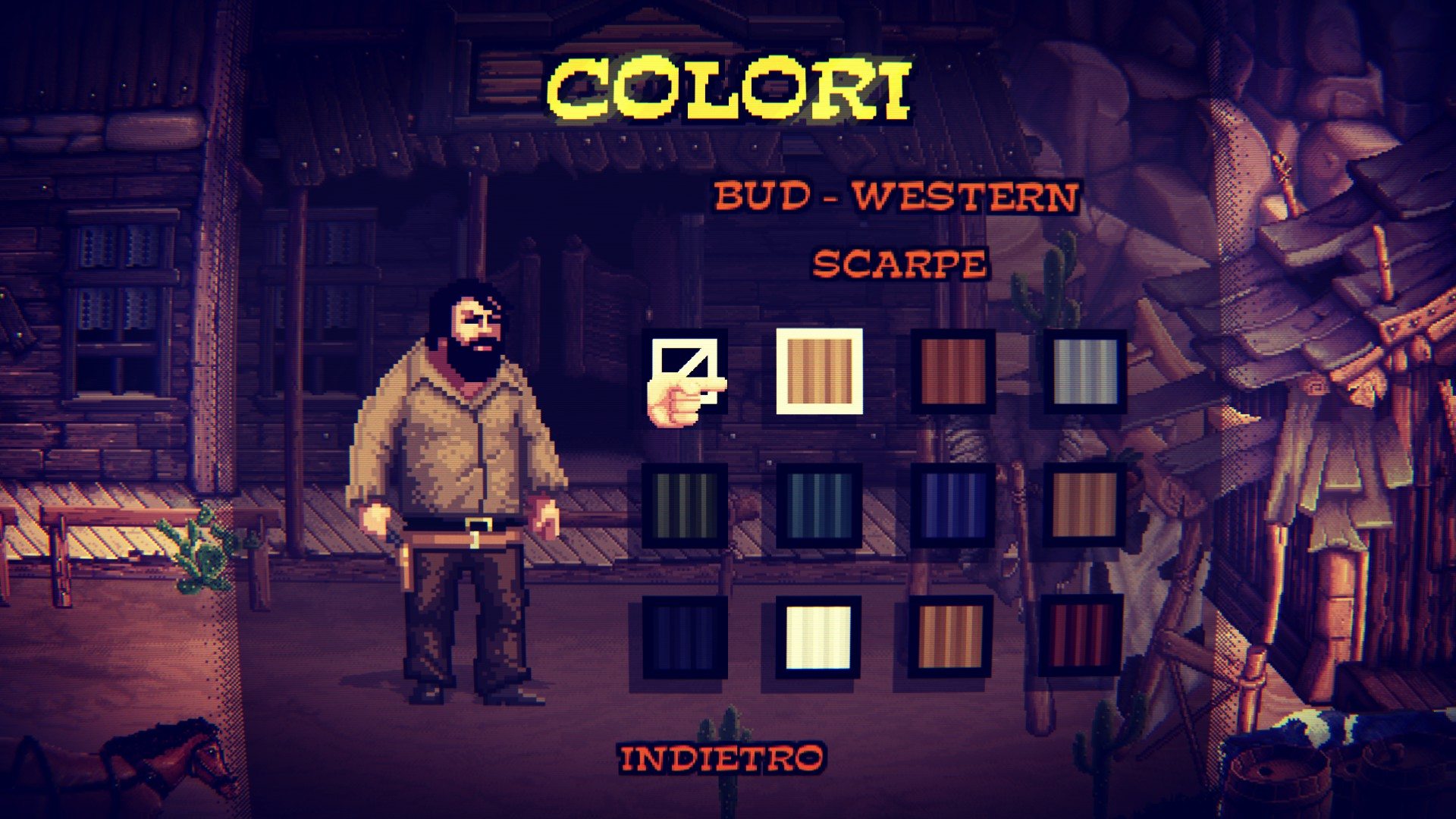Il primo livello ad accoglierci è proprio il selvaggio west, dove i due protagonisti sono intenti a cucinarsi una cena a base di fagioli ma vengono disturbati da alcuni banditi. Dopo già i primi minuti si sente il famoso fischio del film di E.B. Clucher, ed è già pelle d’oca.
