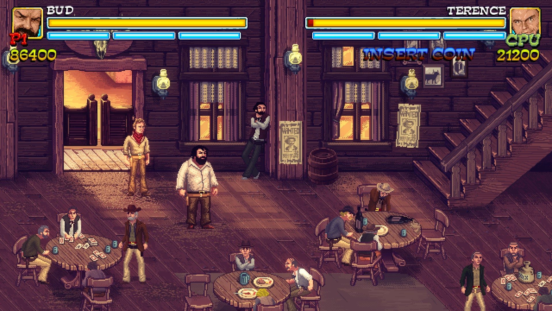 Slaps and Beans è il titolo che sancisce l’arrivo dei due superpiedi quasi piatti su Steam con un titolo dallo stile retrò che mette d’accordo tutti, perché diciamocelo tutti siamo cresciuti guardando i loro film e tutti portiamo nel cuore le scazzottate ed il coro dei pompieri.