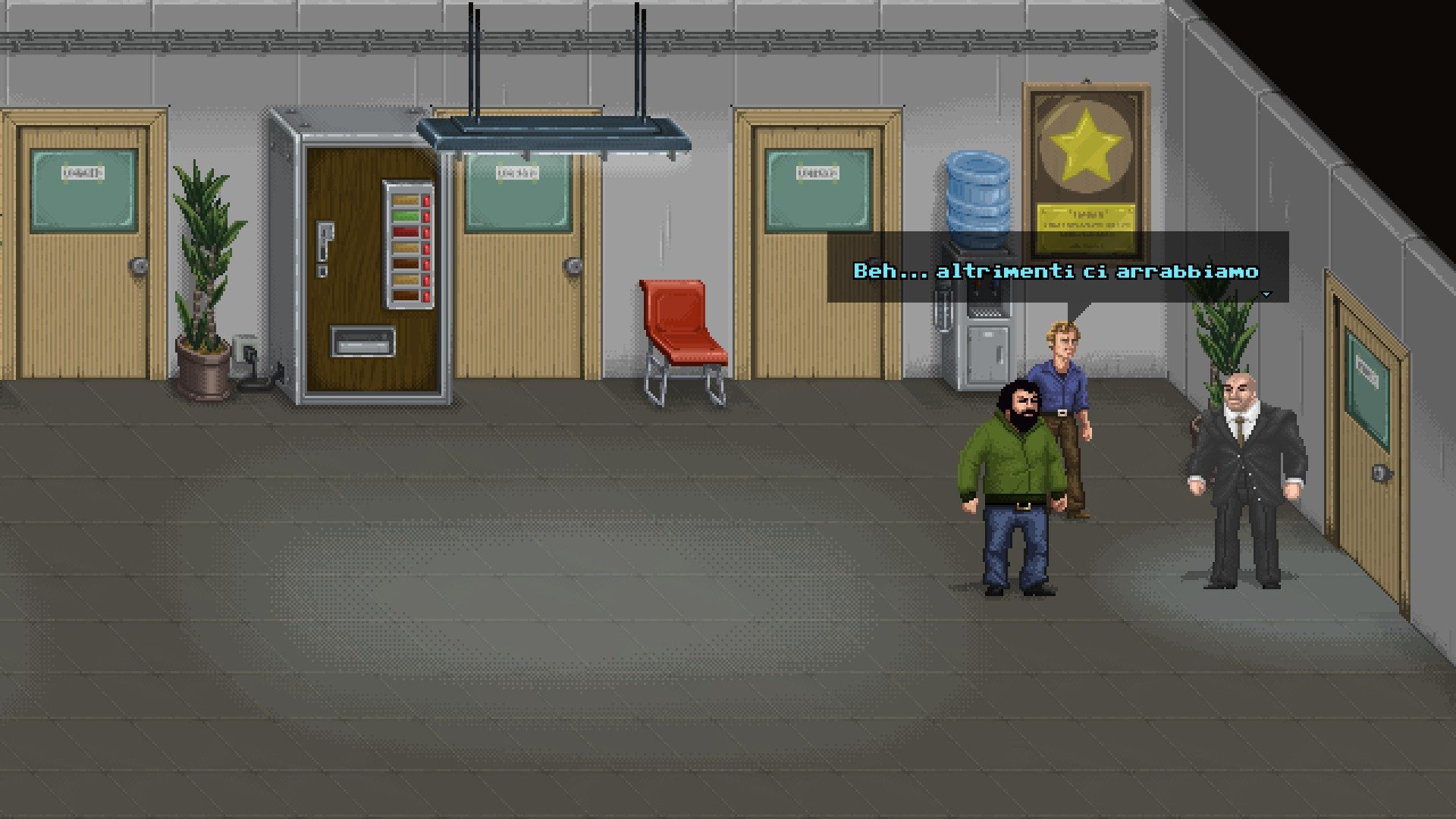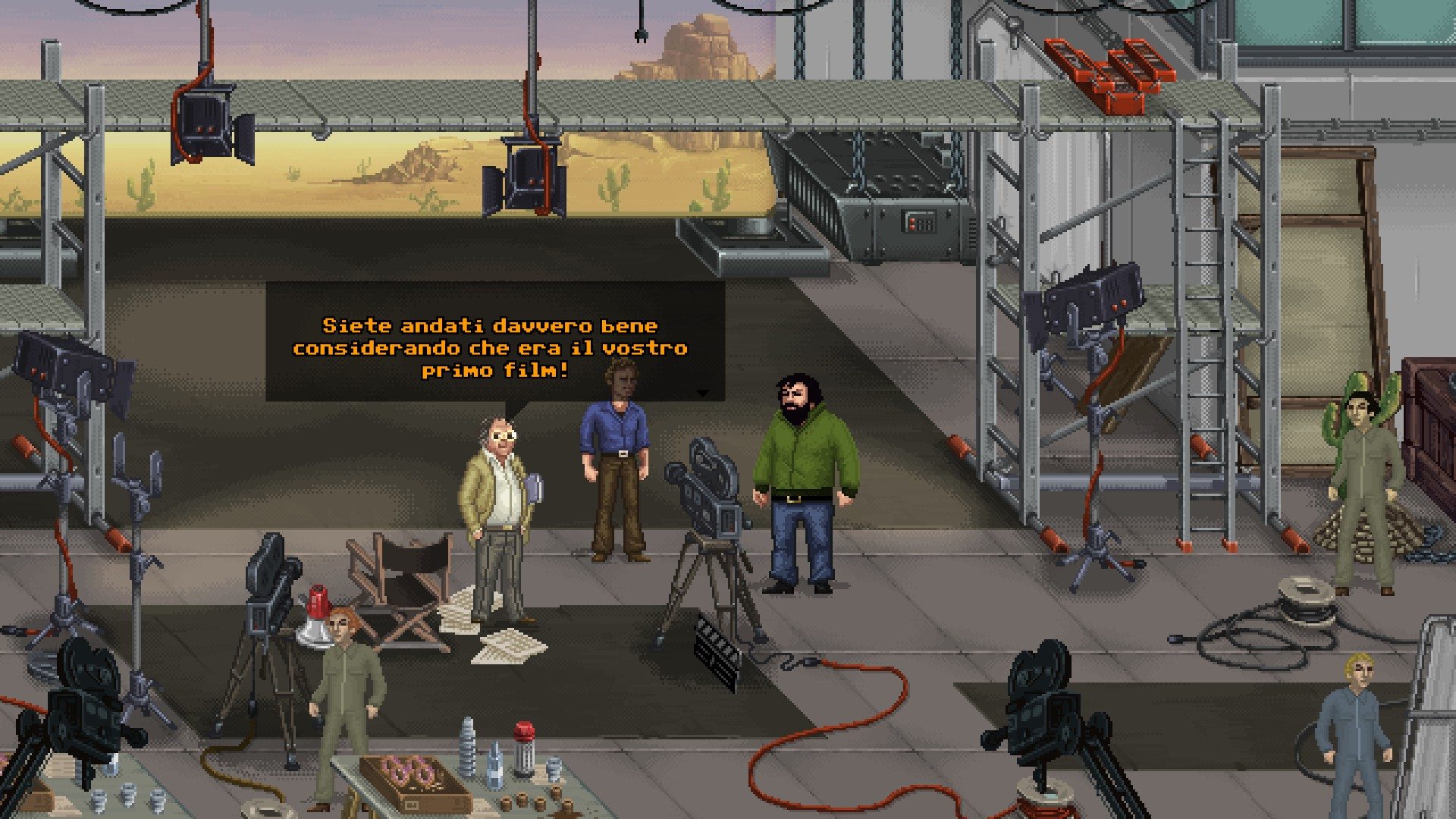 Il primo livello fila scorrevole tra una scazzottata ed una sparatoria introducendoci i comandi e le meccaniche principali che andremo ad affrontare, arrivati alla fine però si scopre che quello che abbiamo appena giocato è solo il set dell’omonimo film. Al momento del pagamento dei due attori, Sofia l’assistente del regista viene rapita e ciò darà il via alle avventure del super duo attraverso una serie di livelli che richiamiano altri loro film di successo come Altrimenti ci arrabbiamo e Banana Joe.