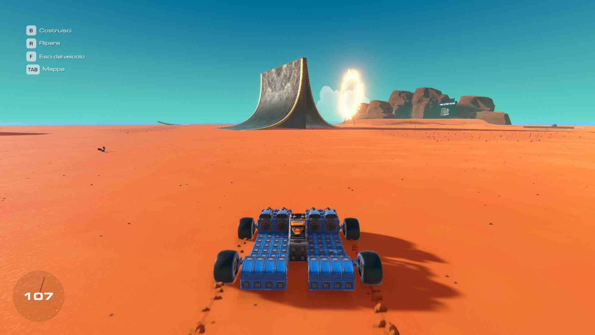 Completata l’ideazione del mezzo, al giocatore, non resta che premere B per poi mettere mano alla fase esplorativa. Il mondo di gioco appare sin dal primo momento, privo di limiti veri e propri; l’esperienza del giocatore viene vincolata unicamente dagli ostacoli fisici che compongono l’ambientazione.