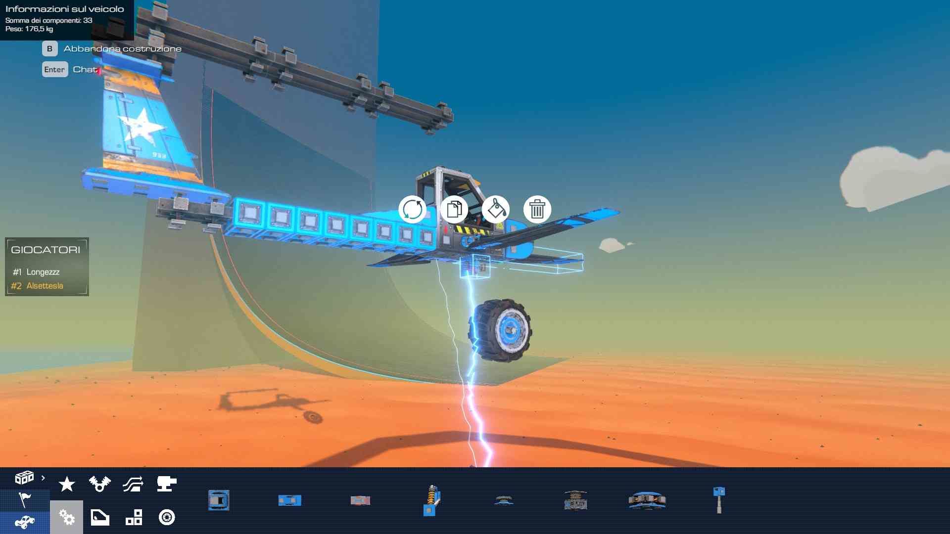 Una volta creato un telaio abbastanza capiente e resistente sarà compito del giocatore ragionare sull’aerodinamicità del veicolo e studiarne meglio il posizionamento dei motori e degli altri componenti nel tentativo di equilibrare il tutto.