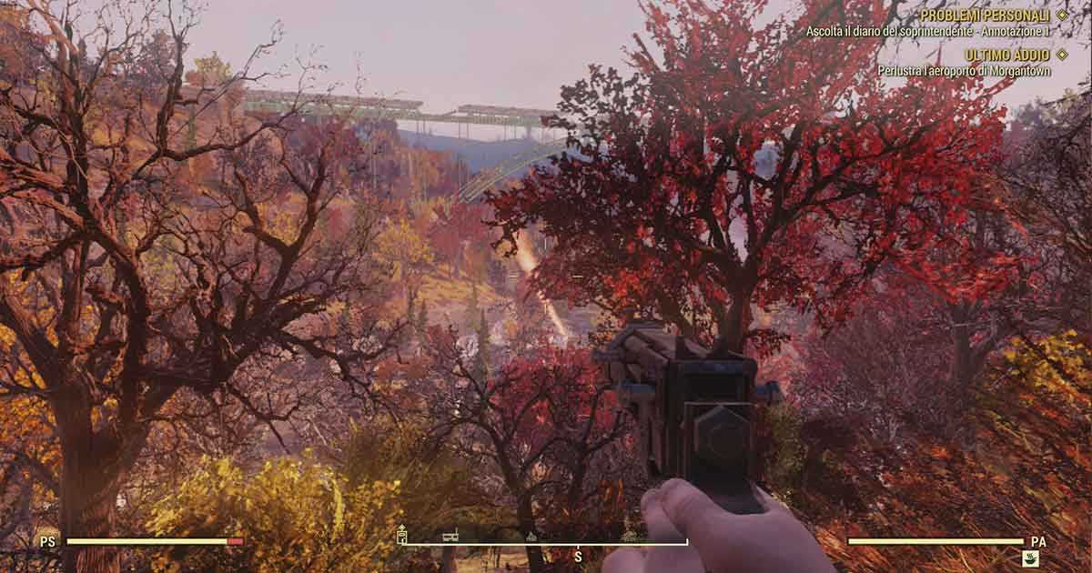 Non so davvero quanto John Denver sarebbe stato contento di “tornare a casa” se avesse visto come le radiazioni hanno trasformato il West Virginia della sua canzone. Dopo la Zona Contaminata e le Wastelands, Bethesda ci porta in Appalachia, in West Virginia, dove forse la guerra nucleare è stata molto più leggera rispetto ai precedenti episodi. La prima cosa che abbiamo notato sono stati infatti i colori, molto più accessi e puliti rispetto ai panorami verdi e spenti a cui la saga ci ha abituato. Il paesaggio fuori dal Vault 76 sembra si sbiadito come in una vecchia fotografia, ma scattata nel momento più intenso dell’autunno.