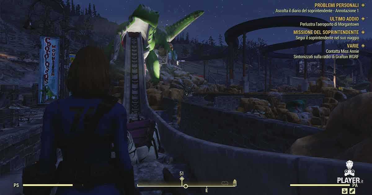 I giocatori più solitari potrebbero sentirsi delusi da questa svolta multigiocatore eppure quando si vaga per le strade di questo apocalittico West Virginia si sente una sensazione di familiarità. Come se ci fossimo già stati, come se fossimo sempre stati pronti per questo. In qualsiasi vecchio capitolo della saga era possibile vedere Mirelurk divorare ignari pescatori, guerrieri pronti a combattere per la propria confraternita, uomini perduti in preda alle mutazioni. Tutto quello che cambia, una volta fuori da questo Vault 76, è che quei pescatori, quei guerrieri o quegli uomini perduti potremo essere noi.
