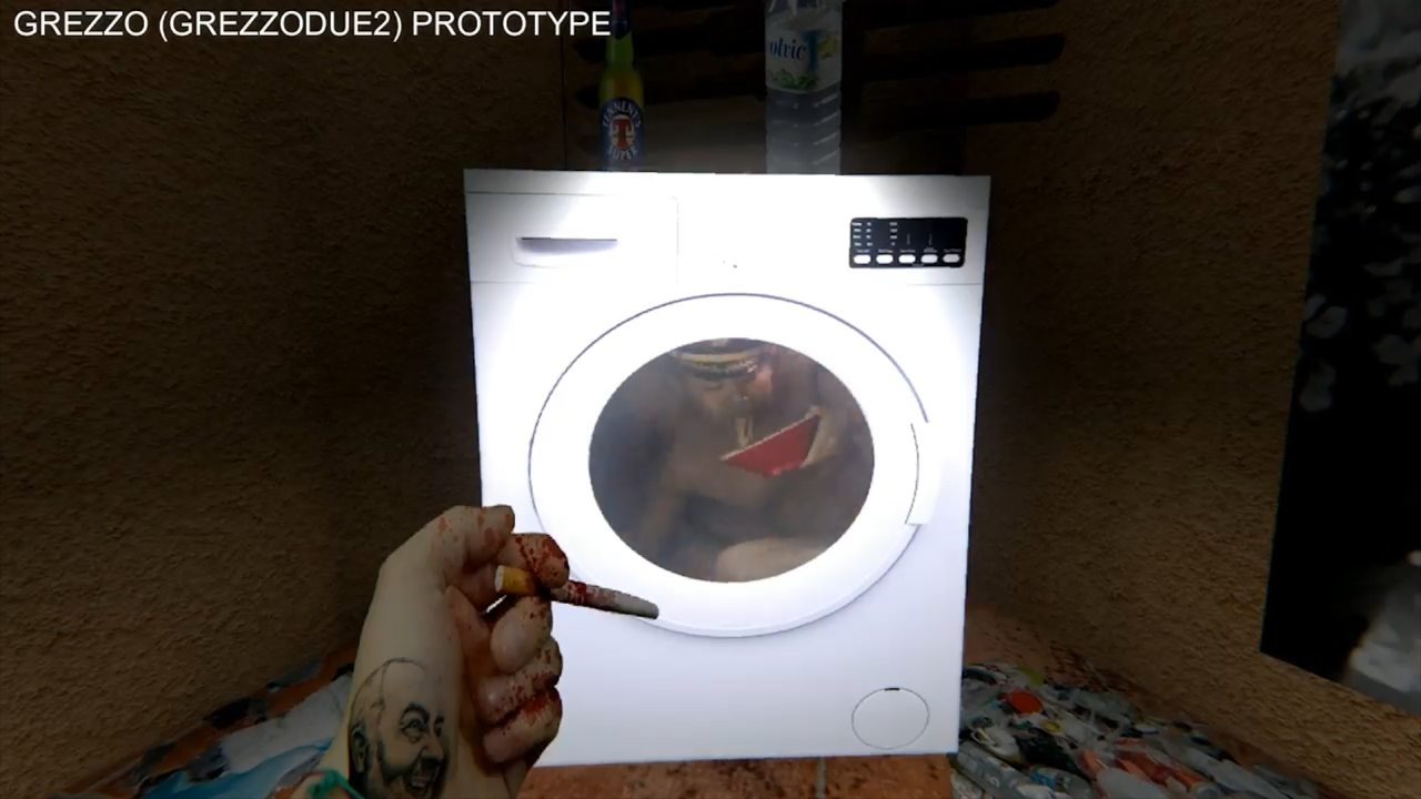 Proseguiamo per il bagno dove possiamo trovare una divertente scena di un cinese che mangia ramen, bloccato all’interno del cestello della lavatrice durante la centrifuga. Ci giriamo verso la doccia e osserviamo una piccola scenetta osè. Conoscendo Grezzodue non sarà sicuramente l’ultima.