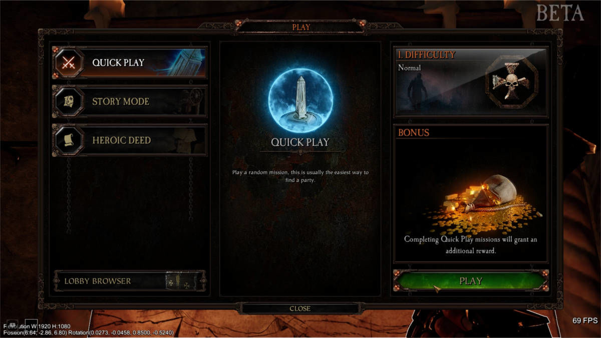 Nonostante nella closed beta ci siano solamente tre missioni da fare si capisce subito come funziona il tutto. Infatti ci sono tre modalità, Quick Play, che ci catapulterà subito in una missione casuale, fornendoci anche premi aggiuntivi, poi c’è Story Mode, in cui potremo selezionare noi quale avventura fare e infine abbiamo Heroic Deed, che al momento non presenta alcuna funzione, ma probabilmente servirà per porre degli obbiettivi da completare.