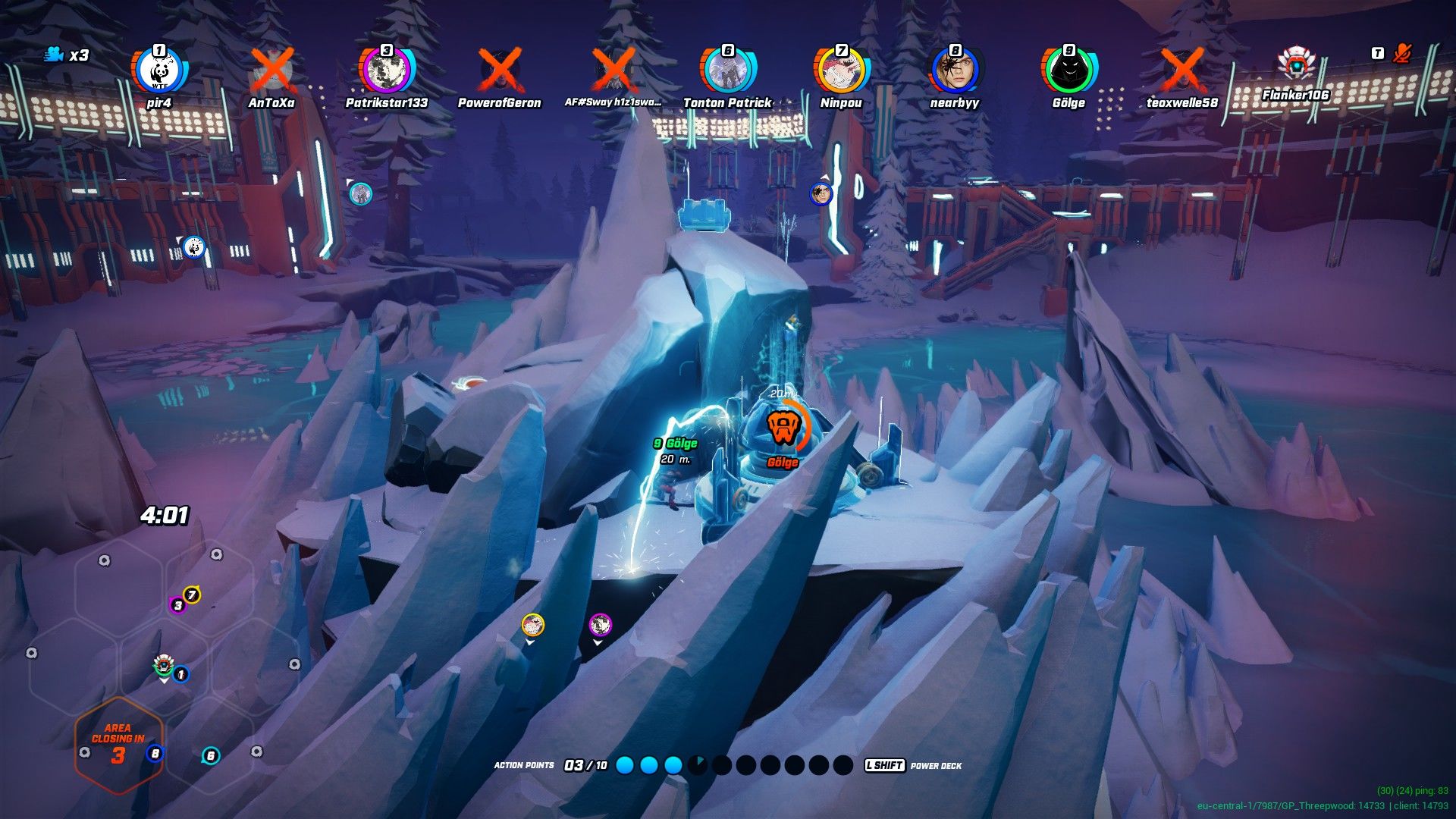 Rispetto ad altri titoli del genere qui non ci troveremo in una mappa che, circolarmente, andrà a chiudersi verso il centro ma in sette settori esagonali che si chiuderanno automaticamente o per volontà del regista. Ogni esagono è caratterizzato da caverne ghiacciate, fiumi di lava, accampamenti abbandonati e case sommerse dalla neve. In alcune di queste strutture, a volte, ci capiterà di trovare una minimappa olografica che ci darà un’idea approssimativa della posizione degli altri partecipanti.