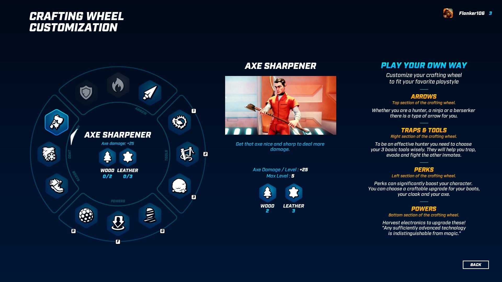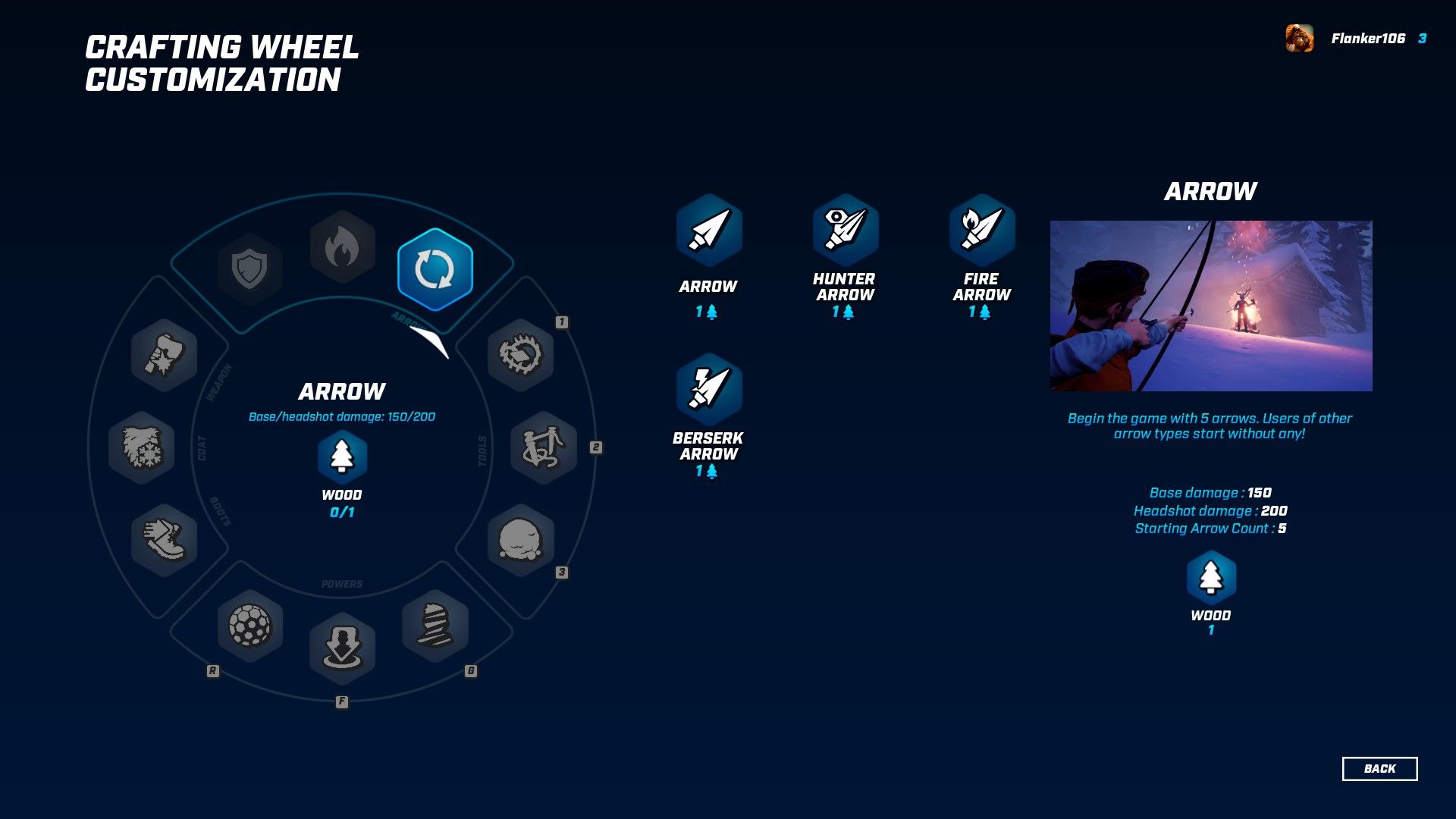 Attraverso questo menù potremo creare tutto ciò che ci serve per sopravvivere e prima di ogni partita potremo personalizzare frecce, equipaggiamenti, trappole e poteri a seconda del nostro stile di gioco.