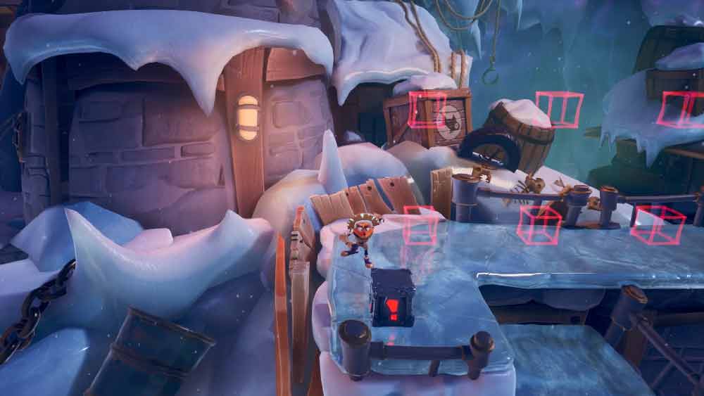 Questo primo livello, ambientato in un porto innevato abitato da pirati e pescatori, ci presenta subito una delle nuove maschere che ci accompagneranno nel gioco: Kupuna-Wa, la maschera del tempo.