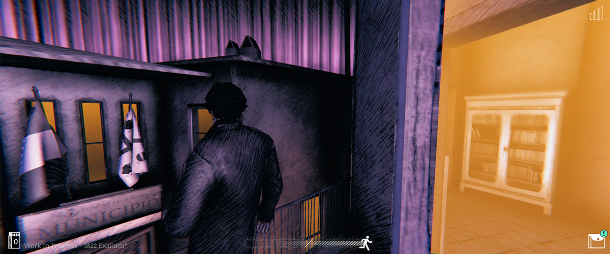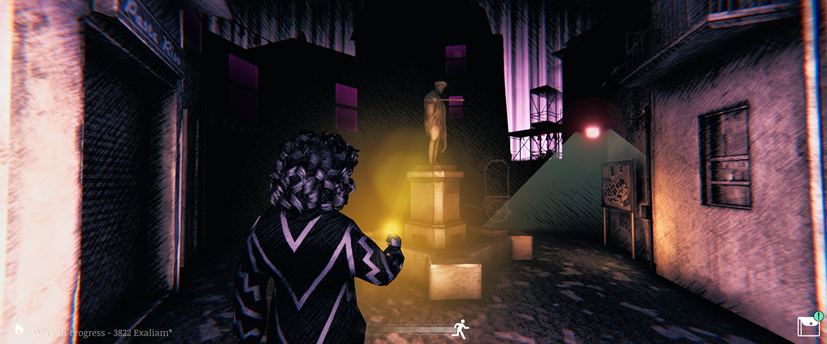 Non abbiamo ancora parlato dell’elefante nella stanza: ma che figata è l’art direction? I modelli 3D sono semplici e basilari, ma il rendering dona un’aura noir e vintage pazzesca a Saturnalia: ombre scarabocchiate, tonalità scure illuminate di tanto in tanto da luci viola e gialle, violente e allo stesso tempo avvolgenti. Il tutto è gestito da una sorpresa tech interessante: sebbene Saturnalia sia stato sviluppato sul motore di gioco Unity, Santa Ragione utilizza un suo sistema di rendering e di illuminazione che applica il colore durante lo shading e la post-produzione, e non durante la creazione delle texture. Cercando di non scendere troppo nel tecnico, citiamo quanto ci è stato detto in fase di preview: è come se un film in bianco e nero venisse colorato in tempo reale in base al contesto. Il risultato è intrigante, come potete vedere dalle immagini a corredo di questa anteprima.