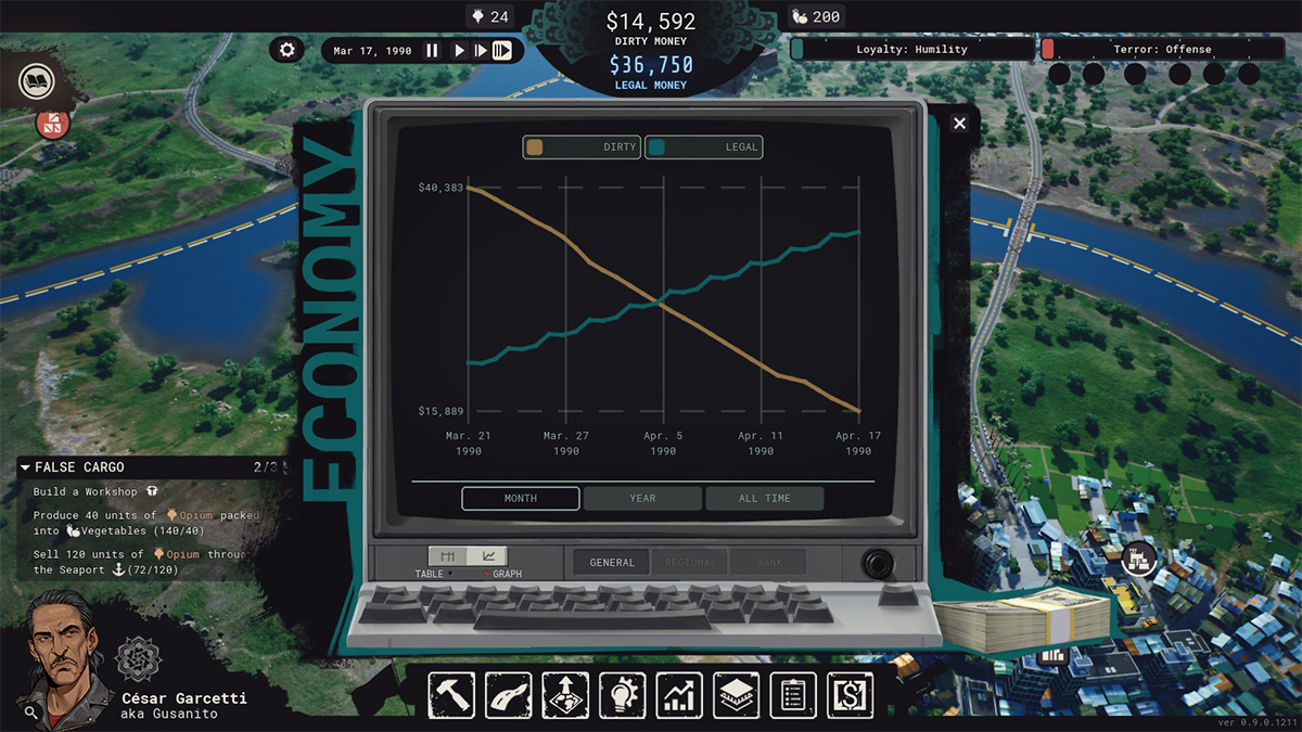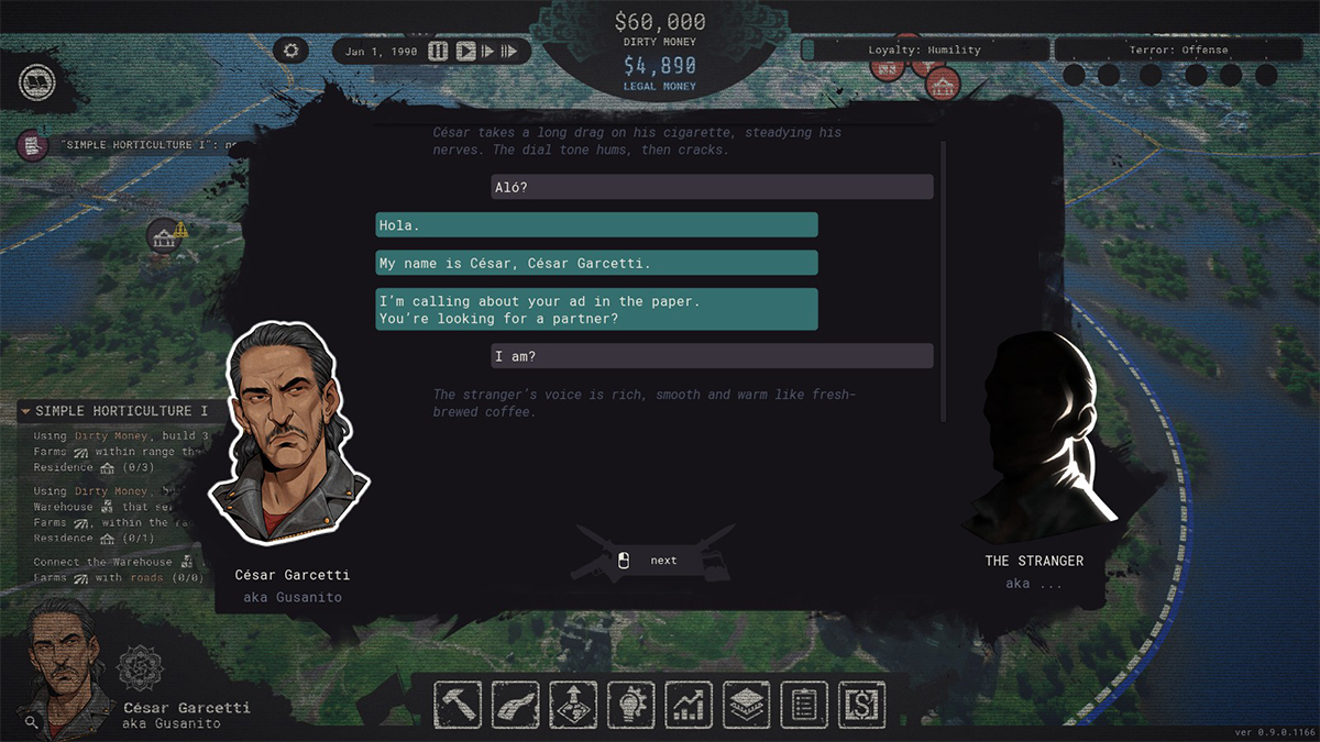 La modalità storia di Cartel Tycoon ci introduce nella vita di César Garcetti, in arte “Gusanito“, un uomo di mezz’età sconfitto dalla disoccupazione, alla ricerca di un lavoro sugli annunci del giornale agli inizi degli anni ’90.