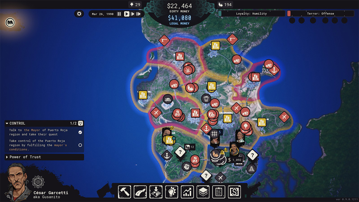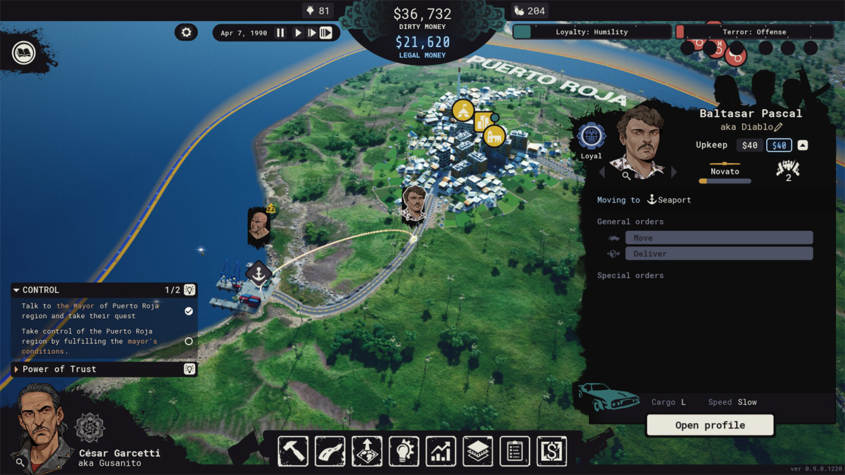Si può rinfoltire il proprio cartello con nuovi componenti della gang, ognuno dotato di proprie abilità, campi di interesse ed esigenze economiche. I vari personaggi del cartello possono essere spostati tra le infrastrutture del giocatore per fornire bonus e protezione. Questi possono anche essere promossi col tempo, ma anche qui bisogna stare attenti che i loro compensi non facciano andare i nostri conti in rosso. In altre parole, la discriminante numero uno del gameplay è sempre il bilancio.