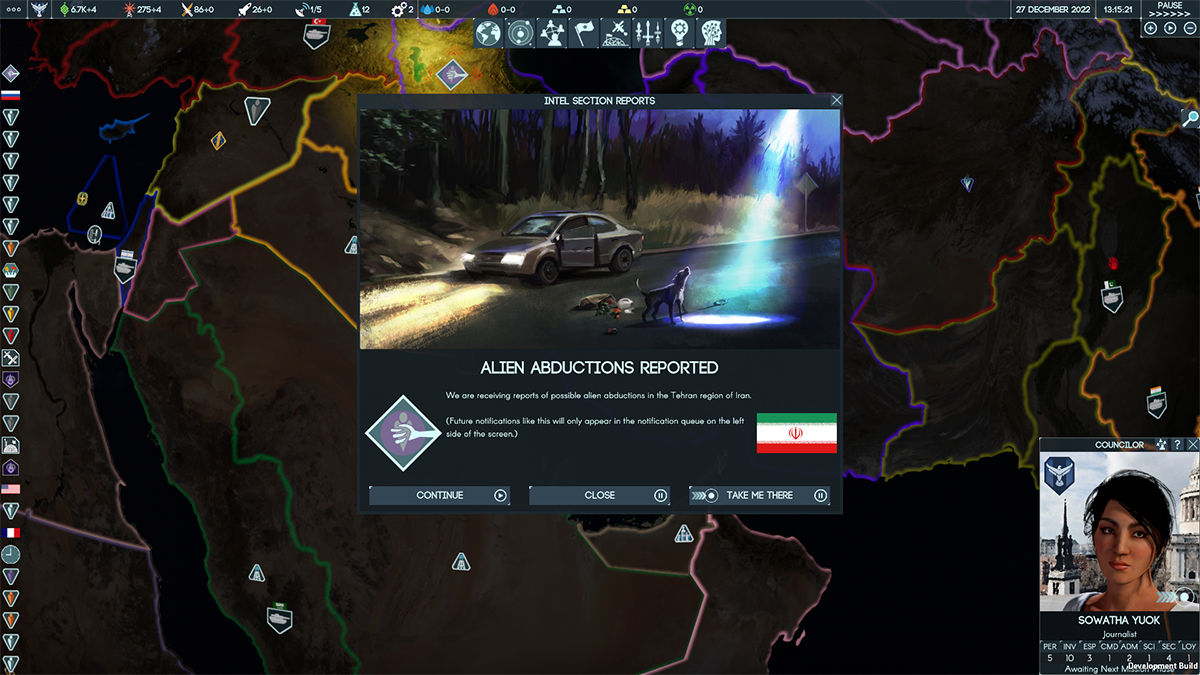 Gli alieni tentano di colpire l’umanità non solo con le loro flotte spaziali, ma anche dall’interno, attraverso spie e infiltrati tra le fazioni della Terra, un po’ come se fossimo in una puntata di X-Files. Terra Invicta, tuttavia, non si esaurisce in solo questo aspetto di resistenza contro gli alieni, anzi. Da quel che ci è parso, la guerra spaziale è solo un pretesto per mettere in conflitto le tante fazioni ideologiche che colorano – letteralmente – le nazioni terrestri: la Terra non riesce a essere unita nel decidere cosa fare, e così si formano delle corporazioni trans-nazionali.