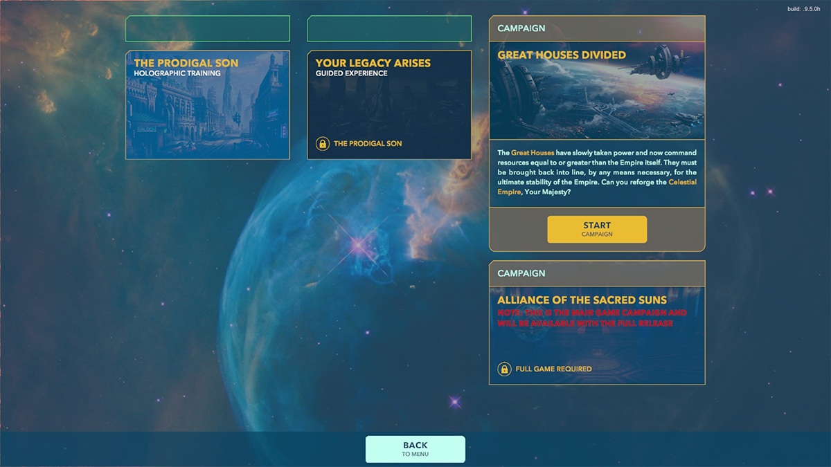 È l’anno 3050. L’umanità, ormai abile viaggiatrice nello spazio, è riunita sotto l’Impero Celeste, un sistema di governo con caratteristiche feudali nato dal collasso della ex Federazione Terrestre a causa delle incursioni degli alieni Xyl. Il giocatore impersona l’ultimo regnante rimasto della sua dinastia, e sotto il suo comando ha le più importanti Grandi Casate che gestiscono il suo Impero.