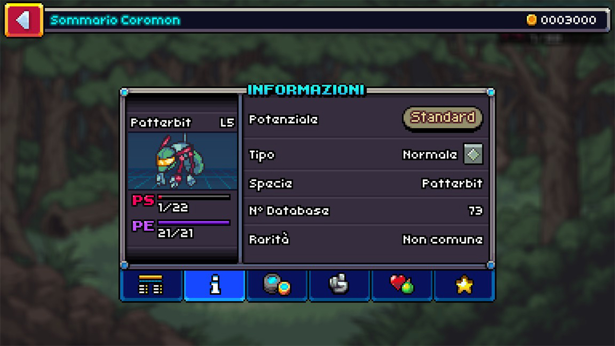 I Coromon ricalcano quasi in tutto le caratteristiche delle creature tascabili più famose. Per cominciare, le statistiche sono praticamente le stesse (ma con l’aggiunta dei Punti Energia), così come la successione di stadi evolutivi in 3 fasi, la presenza di 4 attacchi e un’abilità (qui chiamata Tratto).