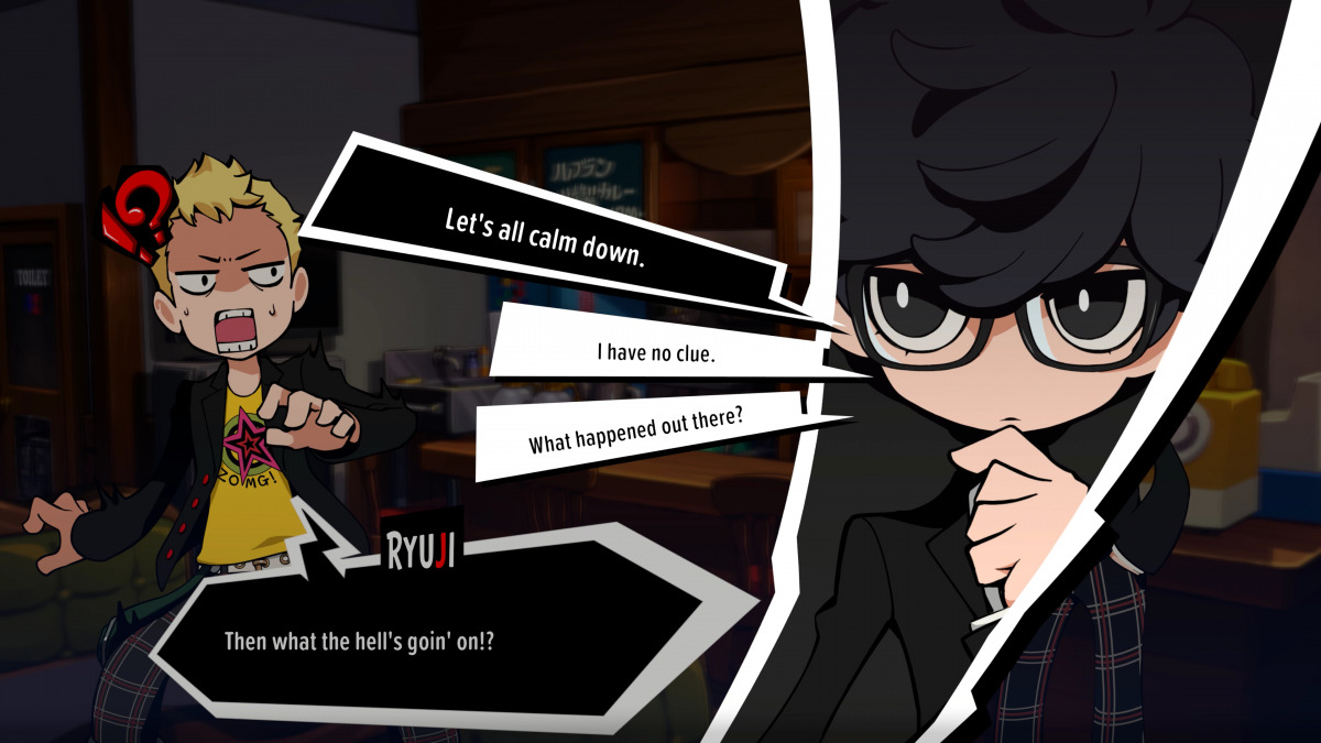 Non abbiamo avuto modo di approfondire molto la storia sia per l’esperienza di gioco frammentata, sia perché avevamo poco tempo a disposizione e tanta voglia di capire come funzionassero i combattimenti tattici, ma da quel che ci è sembrato dai filmati e dalle fasi visual novel con risposte a scelta, sembra la solita “personata” ma in stile più chibi. Ovviamente è stato riconoscibile il ritorno di celebri Ladri Fantasma di Persona 5 come Joker, ma è stata palpabile anche la nuova ambientazione di questo spin-off: un rimando al vecchio Giappone dell’800.