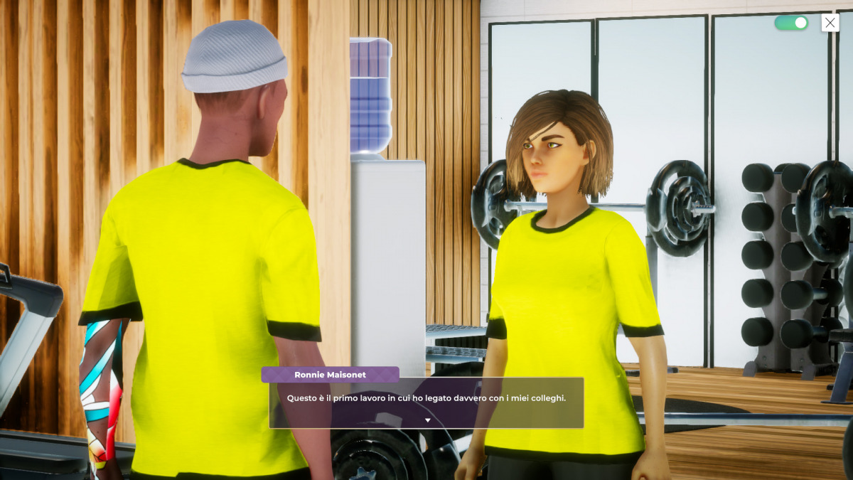 Nonostante le animazioni facciali ancora rudimentali e alcuni asset risultino essere ancora un po’ grezzi, il fascino di Life By You si è mostrato in maniera prepotente nelle interazioni tra Ronnie e il mondo di cui fa parte, persone incluse. Durante il suo lavoro di routine alla Palestra, Ronnie ha incontrato un amico di cui ora mi sfugge il nome: in un primo momento la scelta di un’interazione è mitigata da un menu radiale di scelte in stile The Sims, dove al click su un personaggio o un oggetto corrisponde al pop up di diverse opzioni. Negli altri life sim, l’interazione finisce lì… In Life By You, questa sembra essere solo l’inizio, specialmente quando si tratta dei dialoghi!
