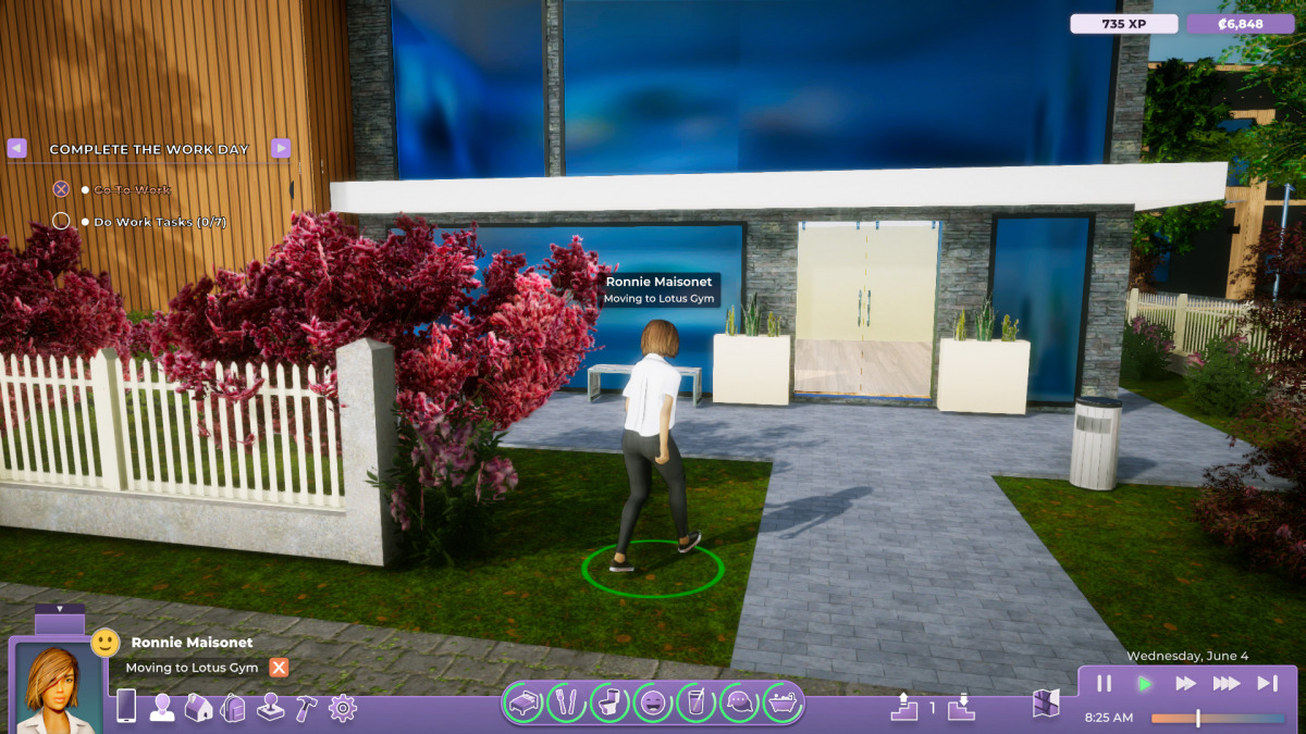 L’istruttrice di yoga Ronnie è andata al lavoro verso la palestra di cui è dipendente. Ah sì, è possibile seguire i propri personaggi in ambienti lavorativi e non c’è bisogno di alcun DLC o di mestieri alternativi per fare ciò. Seguire i personaggi al lavoro non è assolutamente un obbligo, ma la scelta è possibile e… sicuramente ha i suoi risvolti di gameplay che discuteremo più avanti!