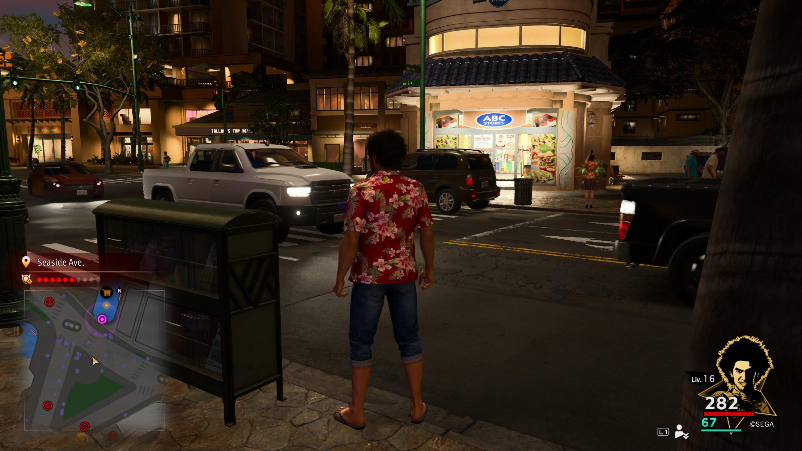 Infinite Wealth accontenta questa voglia portando l’avventura alle Hawaii, abbandonando l’atmosfera propriamente asiatica. Durante l’esplorazione delle spiagge di Aloha Beach e delle caratteristiche viuzze tra locali tipici e mercatini per turisti, abbiamo sentito in qualche frangente le vibes di GTA: Vice City. Ovviamente, si tratta di una percezione puramente estetica, potremmo citare anche Scarface, per dire, perché l’atmosfera è quella; diciamo che questo cambio di rotta ci ha fatto molto piacere, sebbene anche Sotenbori e Kamurocho, con i loro colori sfavillanti, non fossero da meno.