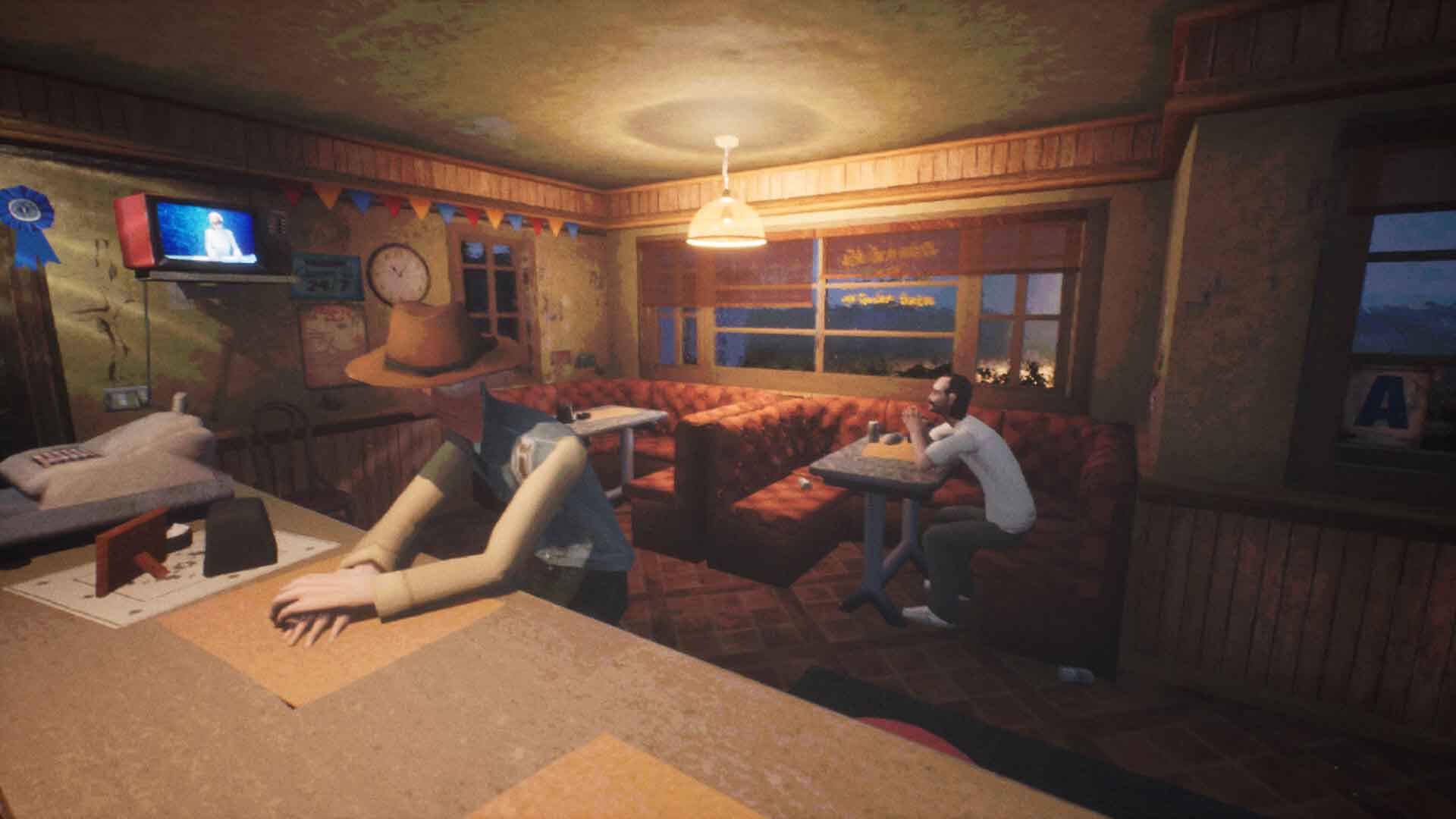 Però, non stiamo parlando ancora dell’elefante nella stanza, anzi, nel diner di While We Wait Here: la grafica. A un primissimo colpo d’occhio sembra di star guardando un gioco di qualche generazione fa, ma passano alcuni attimi prima di rendersi conto che l’impatto visivo è volutamente retro, diciamo un po’ come Valheim… Eppure, questo non basta a definire l’appetenza grafica di While We Wait Here. Ve lo faccio spiegare da ciò che mi ha raccontato Eleonora: