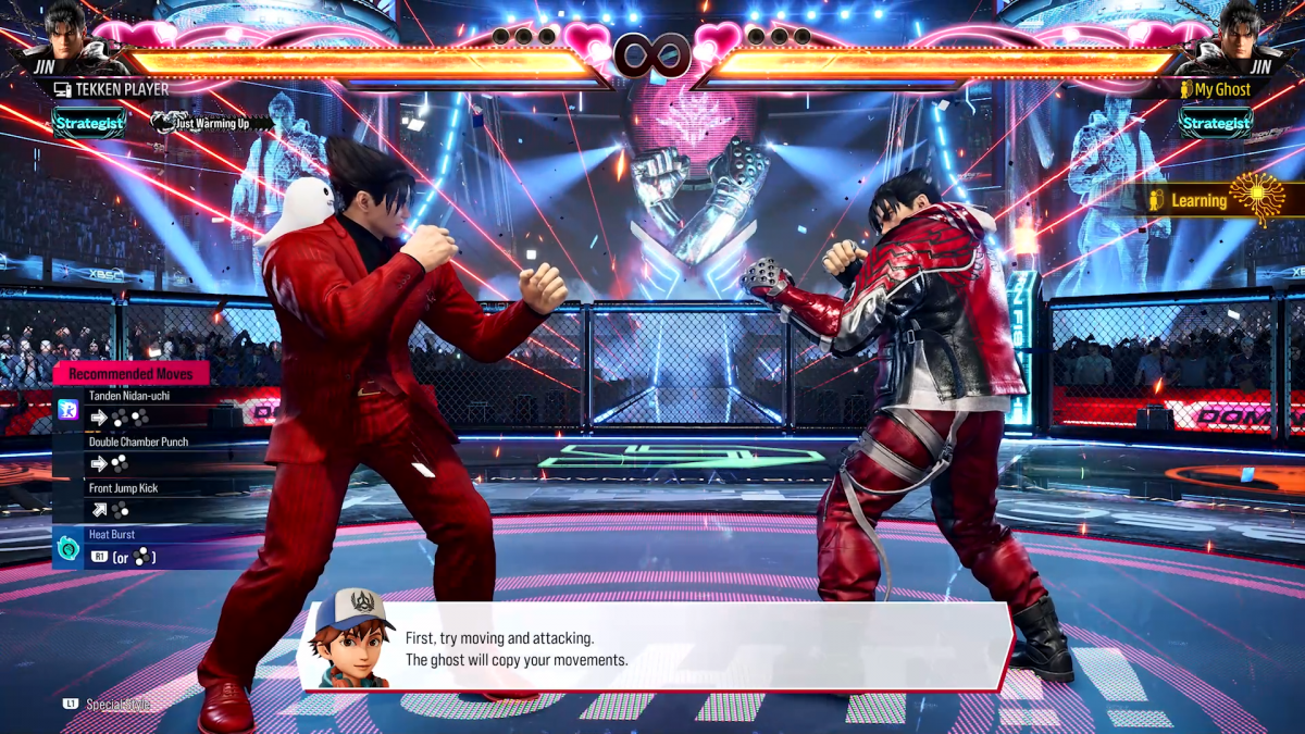 A chiudere questa lunga disamina restano le Super Ghost Battle, di cui probabilmente avete già sentito parlare per quanto riguarda le lobby online: si tratta di sfide contro personaggi la cui intelligenza artificiale è modellata sulla base del giocatore che, mentre aspettiamo in una lobby, decidiamo di sfidare per passare il tempo. Basandosi sull’analisi di combattimenti avvenuti realmente da parte del giocatore in questione, il sistema di Tekken 8 ricostruisce una versione simulata dello stesso. Bene, all’interno dell’Arcade Quest è possibile fare la medesima cosa con noi stessi: creare, dunque, scontro dopo scontro, un fantasma che si modellerà a mano a mano su di noi e su come ci comportiamo sul ring. Questo avviene in una specifica sala giochi e sebbene possa essere più soddisfacente sfidare i fantasmi di altri giocatori, anche avere a che fare con se stessi può tornare molto utile per migliorare.