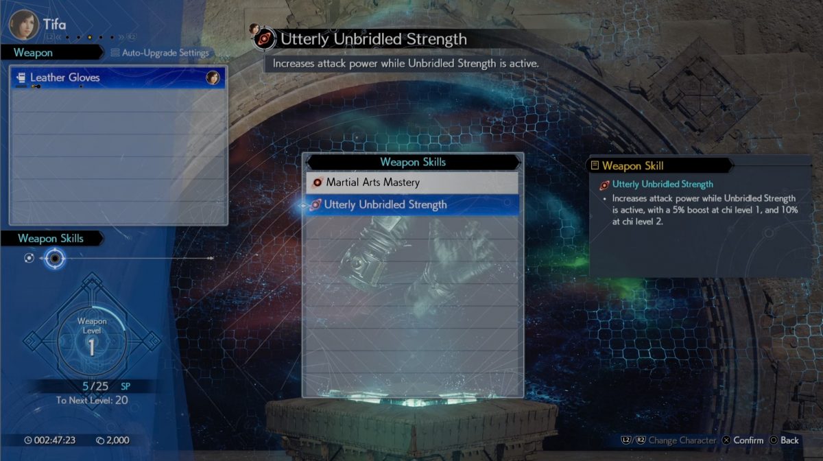 Anche la personalizzazione delle armi è stata completamente rivista. Abbandonata le meccanica di espansione vista in Remake, ora Rebirth propone una nuovo sistema di weapon upgrade anch’esso basato sugli SP, che potranno essere impiegati per livellare le armi e per sbloccarne bonus latenti, solitamente incrementi statistici ma anche bonus di altro tipo (nel caso di Barret, ad esempio, il primo upgrade ottenibile rende più difficile interromperne le azioni da parte dei nemici). È stata invece mantenuta da Remake la presenza di abilità uniche associate a ciascuna arma, il cui uso ripetuto porta al loro apprendimento e possibilità di utilizzo anche una volta cambiato equipaggiamento. Si tratta complessivamente di tante piccole aggiunte gradevoli, anche se rendono i menù di gioco parecchio affollati: bisognerà sondare quanto il sistema rimanga di facile gestione nelle fasi di gioco più avanzate.