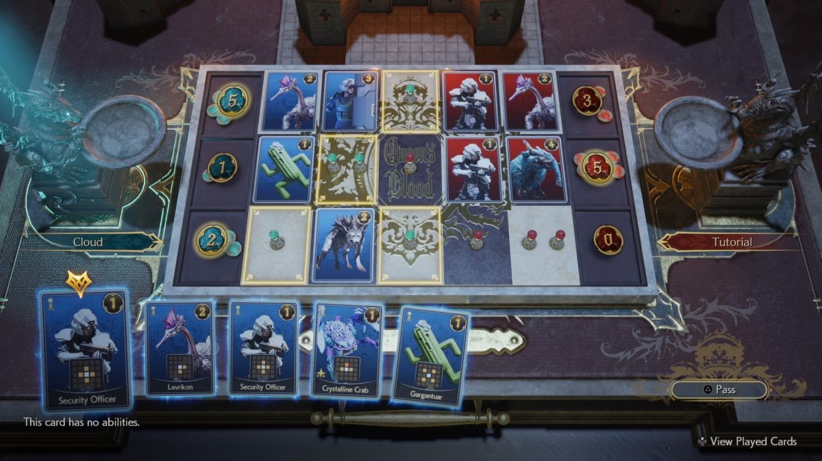 La prima gradevole aggiunta è il minigioco di carte Queen’s Blood, tanto semplice nelle sue meccaniche quanto profondo a livello strategico: si gioca su una plancia divisa in tre sezioni, poste una sopra l’altra. Il giocatore e il suo avversario posizionano le carte delle rispettive mani a partire da uno dei due estremi della plancia. Ogni carta ha un costo di dispiegamento, un valore di punteggio e uno schema di influenza della plancia stessa, che determina su quali porzioni della stessa potremo posizionare le restanti carte. Una volta che ciascun giocatore esaurisce le mosse a sua disposizione, si somma il valore di punteggio delle carte sezione per sezione: chi ha racimolato il punteggio più alto si aggiudica la rispettiva sezione, e aggiunge punti al suo punteggio di vittoria. Si procede così per ciascuna sezione, si contano i punti totali e si determina chi vince la partita.