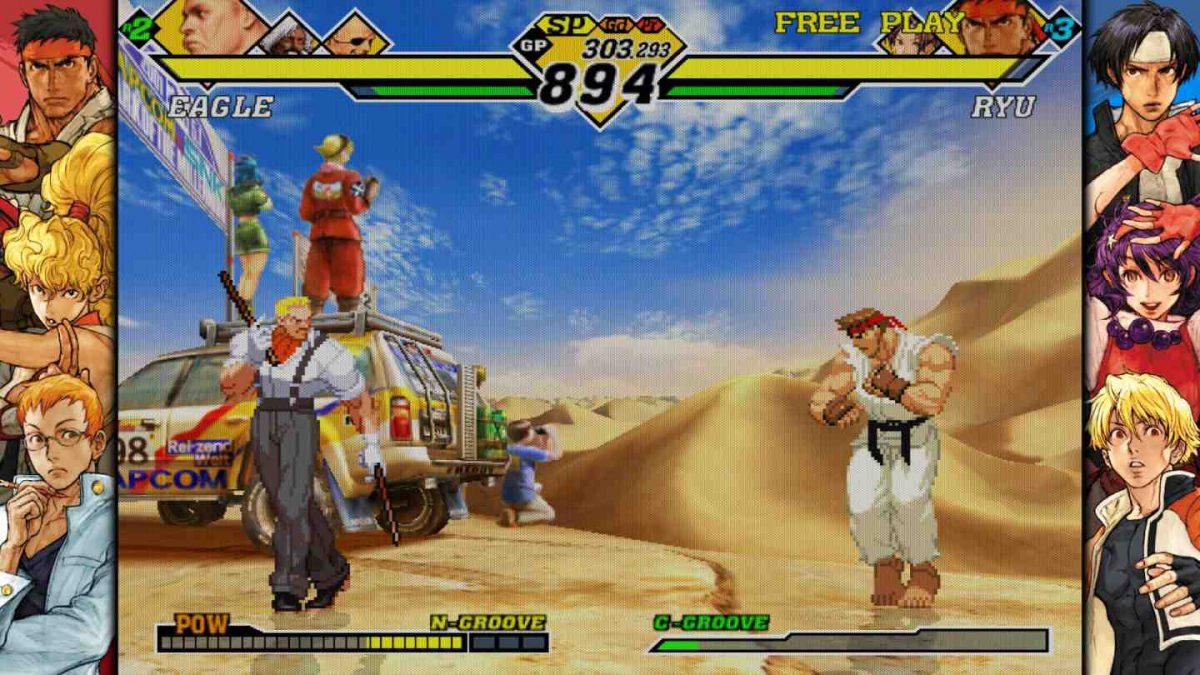 A nostro dire il piatto forte è senza dubbio rappresentato dai due Capcom VS SNK: picchiaduro dalla varietà incredibile grazie alla combinazione di due sistemi differenti: il “Ratio System” (che associa a ogni personaggio un power level) e il “Groove System” (che permette al giocatore di scegliere di aggiungere delle meccaniche specifiche al proprio team). Considerato il roster estremamente variegato in entrambi i casi, abbiamo a che fare con due tra i picchiaduro più complessi in circolazione, specie nel secondo capitolo del brand che permette al giocatore di scegliere tra ben 6 groove diversi.