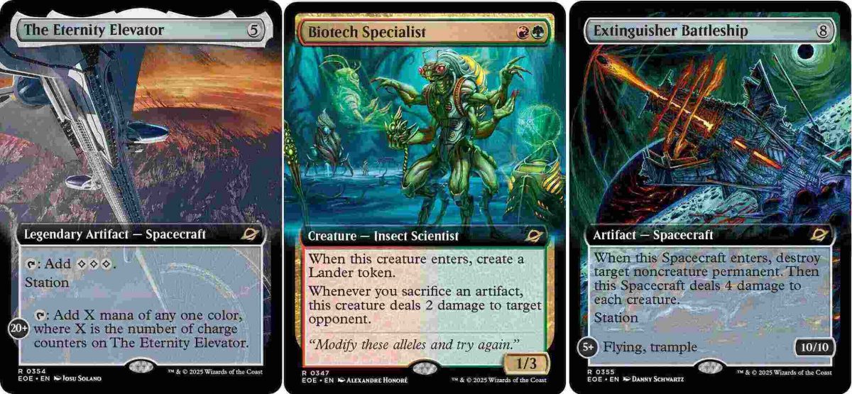 La prima, chiamata Spacecraft, si basa in particolare sul mostrare l’enorme potenza delle navi spaziali e funziona all’incirca come i veicoli. Tappando delle creature è infatti possibile mettere dei counter sulla spacecraft e, una volta raggiunto il limite indicato sulla carta, sbloccarne i relativi effetti e, in alcuni casi, farle anche diventare delle creature a loro volta. Tale abilità è inoltre presente anche su alcune terre, che sono dotate di potenti effetti utilizzabili solo dopo aver raggiunto un determinato punteggio di counter su di esse.