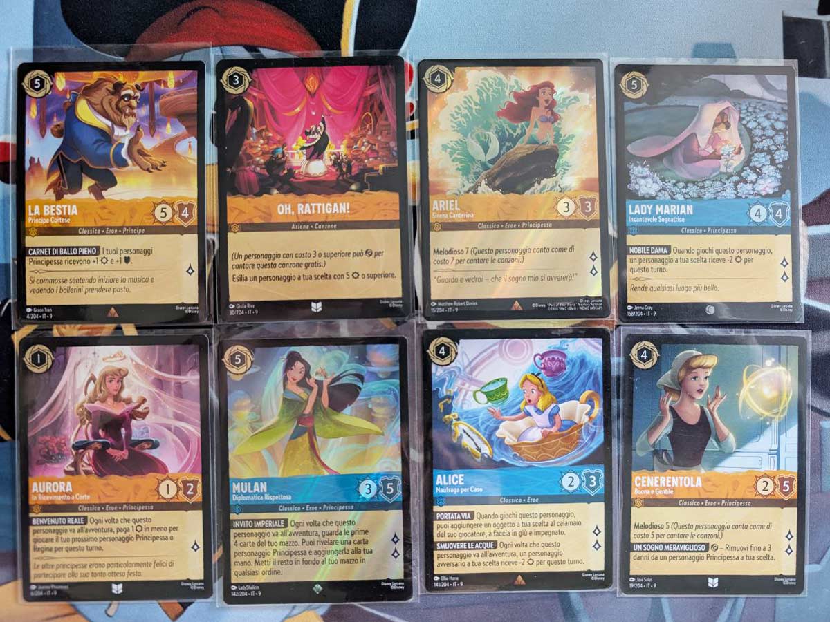 Anche l’altro starter deck provato mostrava una combinazione di inchiostri insolita, ovvero ambra/zaffiro. Questo mazzo infatti punta tutto o quasi sulla classificazione Principessa delle carte. Le Principesse sono tornate (anche se non se ne sono mai andate completamente da Lorcana) e sono pronte a riprendersi il posto che gli spetta nel meta.