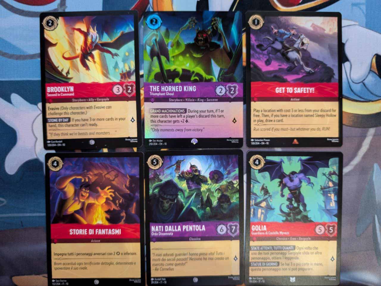 Questo decimo set porta carte da numerosi nuovi franchising come Taron e la Pentola Magica, la serie TV animata Gargoyles e La Leggenda della Valle Addormentata, un mini classico Disney tratto da un racconto di Wahington Irving e con dei personaggi pittoreschi come Il Cavaliere Senza Testa e lo strambo maestro di scuola Ichabod Crane (che al cinema è stato interpretato anche da Johnny Depp). Insieme a loro, tra i ritorni, anche i personaggi di Ducktales, tra le carte più numerose di questo nuovo set, quelli di Hercules, Cenerentola e Zootropolis in tempo per l’uscita del secondo film al cinema.