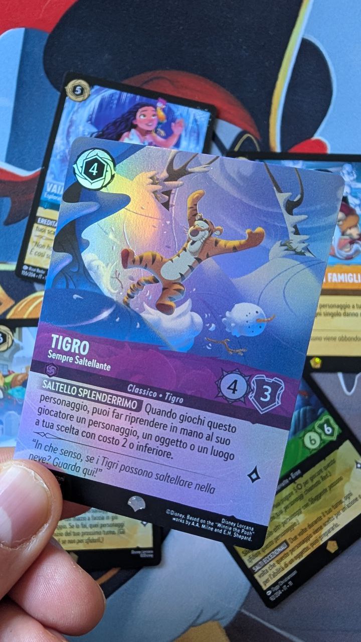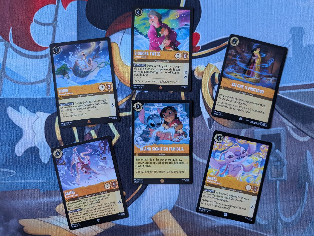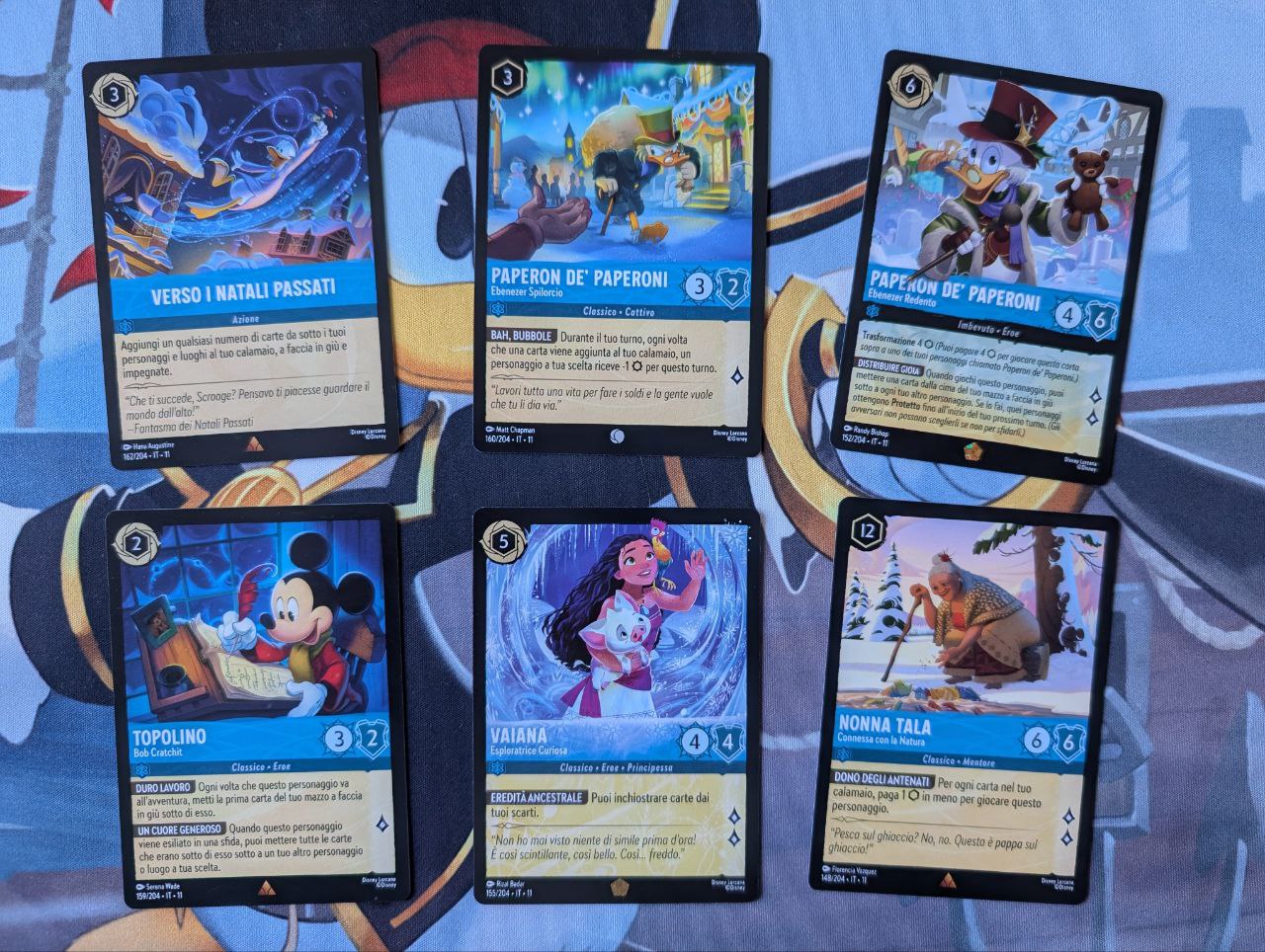 Questo set 11 di Lorcana resuscita alcuni inchiostri, come il rubino, che era diventato quasi inutilizzabile, specie nel competitivo. Grazie alle nuove carte con abilità “Sfavorito”, presenti in ogni inchiostro, offre una chance di rimonta a chi parte per secondo e aggiunge qualche meccanica davvero nuova per quanto riguarda i luoghi che iniziano ad interagire davvero con le altre carte. Molte delle nuove aggiunte sono però facilmente dimenticabili, gli oggetti ancora non riescono a trovare (o ritrovare) il loro posto nel TCG e il design di questo Incanto d’Inverno, non è così ispirato come quello del set scorso. Un peccato perché ci aspettavamo tanto dalle carte di Darkwing Duck, sia lato abilità che design, ma ci hanno deluso su entrambi i fronti. Non resta che aspettare l’arrivo del set 12, Lande Sconosciute e vedere come cambierà il gioco insieme ai personaggi Pixar.