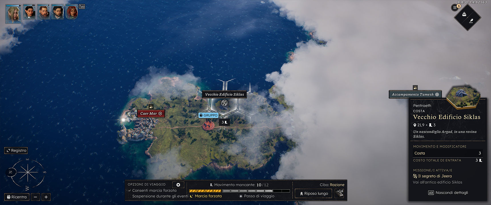 Nonostante “il graficone“, nei momenti esplorativi il ritmo di Solasta 2 mi è sembrato assumere connotati molto più rapidi e meno riflessivi di BG3, assumendo più la dimensione di un videogioco puro e meno quella di una trasposizione di una sessione al tavolo. Ciononostante, i viaggi lunghi riportano in gioco sia quella dimensione riflessiva che mancava nelle esplorazioni, sia la sensazione di stare a una sessione GDR al tavolo: la mappa del mondo è piena di tessere esagonali e gli eventi casuali sono alla portata di ogni passo.