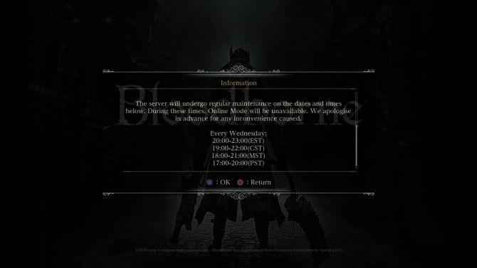 Sony e From Software hanno annunciato che la modalità online di Bloodborne sarà inattiva per tre ore alla settimana, per una manutenzione programmata. I server saranno offline ogni mercoledì, in particolar modo dalle ore 19:00 alle ore 22:00 (l’orario è già stato convertito con il fuso orario italiano).