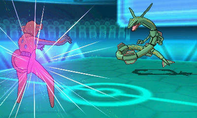 The Pokémon Company International e Nintendo hanno annunciato oggi che il potente Pokémon leggendario Rayquaza, ben noto ai fan, apparirà accanto agli altri leggendari Groudon e Kyogre in Pokémon Rubino Omega e Pokémon Zaffiro Alpha. Secondo la leggenda, il misterioso Rayquaza, Pokémon di tipo Drago e Volante, è sceso più volte sul pianeta per porre fine ai terribili scontri fra Groudon e Kyogre.