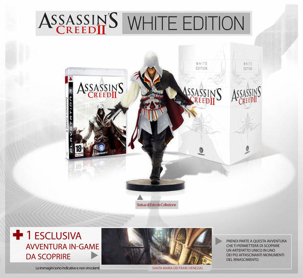 Ubisoft farà uscire due versioni di Assassin’s Creed 2: una nuormale e una limited, chiamata Black Edition. L’edizione limitata sarà acquistabile solo in pre-ordine presso i punti vendita MediaWorld, Gamestop, Fnac, Blockbuster Gamesrush e Feltrinelli.