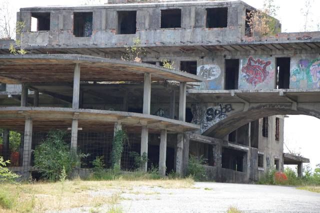 Gli abitanti vengono trasferiti e i vari edifici abbattutti. Via le case costruite a ridosso della chiesetta, giù il comune, l’osteria e pure l’unica bottega del paese. Al loro posto vengono previsti edifici dalle forme più bizzarre e strampalate come una galleria commerciale a forma di minareto arabo, una pagoda cinese, un castello nmedievale, un hotel di lusso e tanto altro ancora.