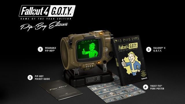 L’edizione limitata è disponibile in quantità limitate e solo presso i retailer selezionati. La confezione contiene una replica indossabile del Pip-Boy, nella quale potete inserire il vostro smartphone e includerà anche la versione Game of the Year di Fallout 4.