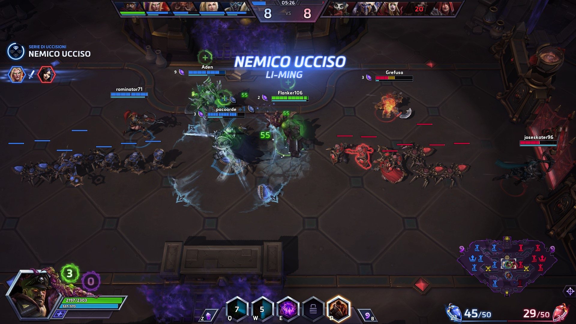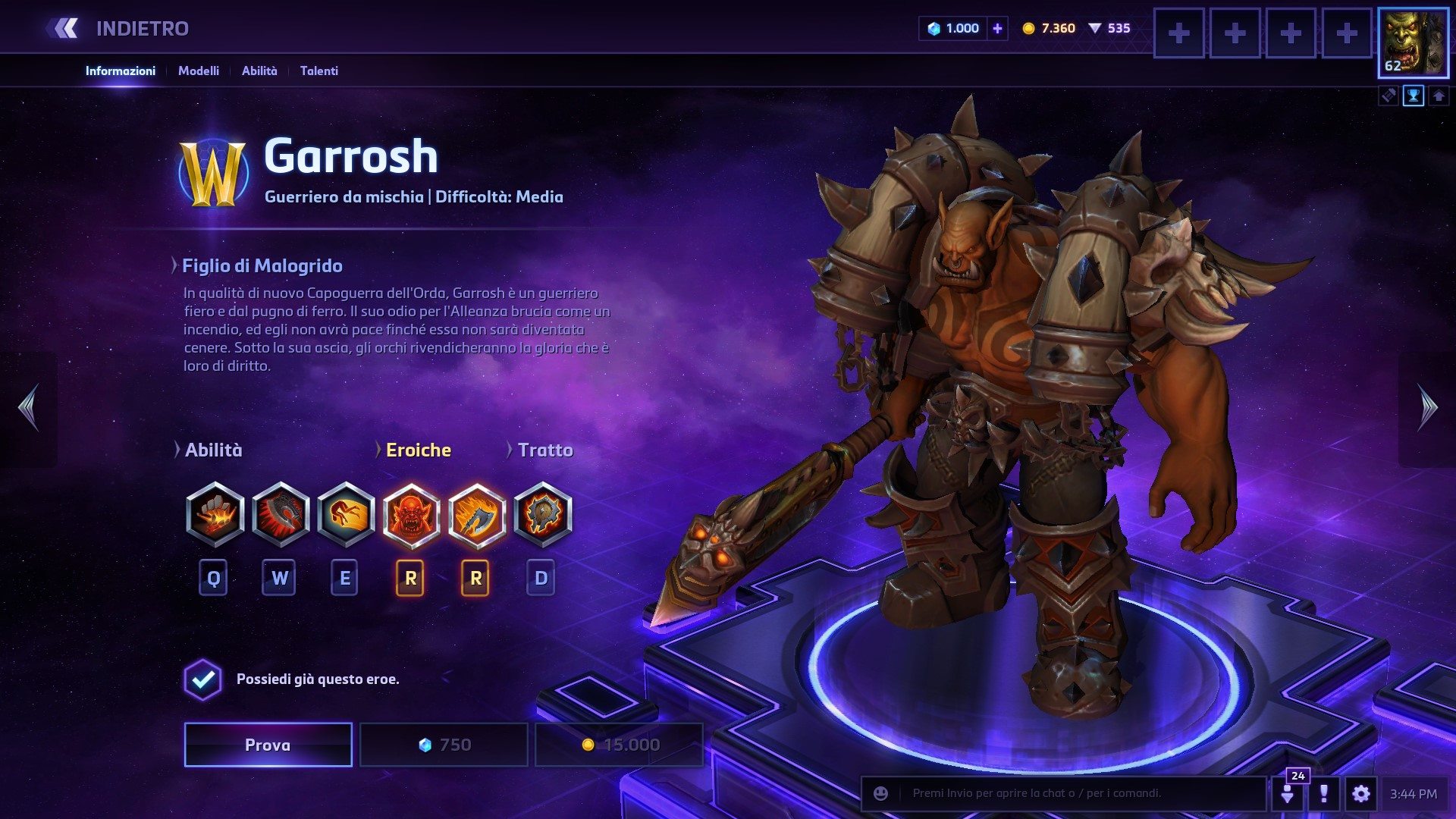 Il figlio di Grommash è un guerriero esperto per giocatori esperti, meno intuitivo rispetto a E.T.C e che richiede qualche partita per entrare nell’ottica giusta. Se giocato con una formazione bilanciata e con compagni di squadra propositivi ed aperti alla comunicazione Garrosh si rivela un vero leader nel Nexus capace di capovolgere le sorti del match applicando il suo brutale controllo sulla squadra avversaria.