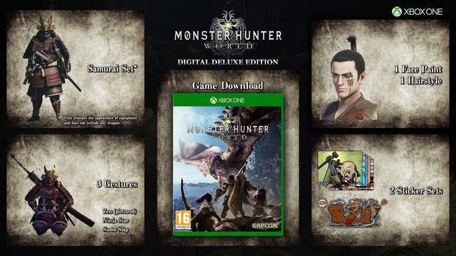 Pre-ordinando Monster Hunter: World in Europa sia per PS4 che per Xbox One nei negozi che partecipano all’iniziativa, si potrà accedere allo speciale bonus pre-order, che comprende l’Origin Set Armor e il Fair Wind Charm Talisman*, che garantiscono statistiche di attacco e difesa migliorate per il cacciatore e un utile skill di raccolta. Verifica con il tuo negoziante i bonus disponibili.