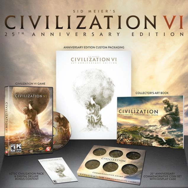 New York, NY – 11 Maggio 2016 – 2K e Firaxis Games sono entusiasti di celebrare il 25esimo anniversario della serie Civilization annunciando Sid Meier’s Civilization VI. Il titolo offrirà ai giocatori nuovi modi di interagire col mondo, espandere il loro impero, diffondere la loro cultura e competere contro i più grandi leader della storia.