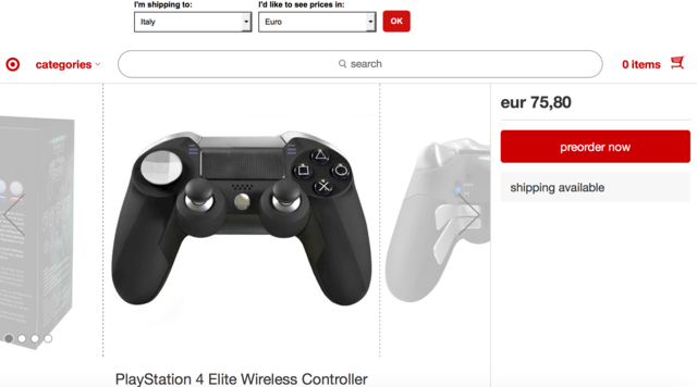 Il noto rivenditore Target ha inserito infatti, nel proprio listino online, il controller “PlayStation Elite” con un prezzo consigliato al pubblico di 75,80€. Il prezzo potrebbe lasciar suggerire che non si tratti di un prodotto ufficiale o che in realtà sia realizzato da terze parti e non da Sony.