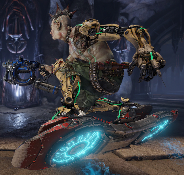 C’è chi lo ama e chi lo odia… Comunque sia, Anarki è lo storico personaggio di Quake III Arena, che i veterani ricorderanno sfrecciare per le mappe sul suo hoverboard. E ora è tornato con la sua tavola e la sua cresta… Insieme al suo atteggiamento tra il tossico, il cibernetico e il transumano. Anarki è pura velocità (e astuzia) e il suo hoverboard trasmette un semplice messaggio: scappa. E in fretta.