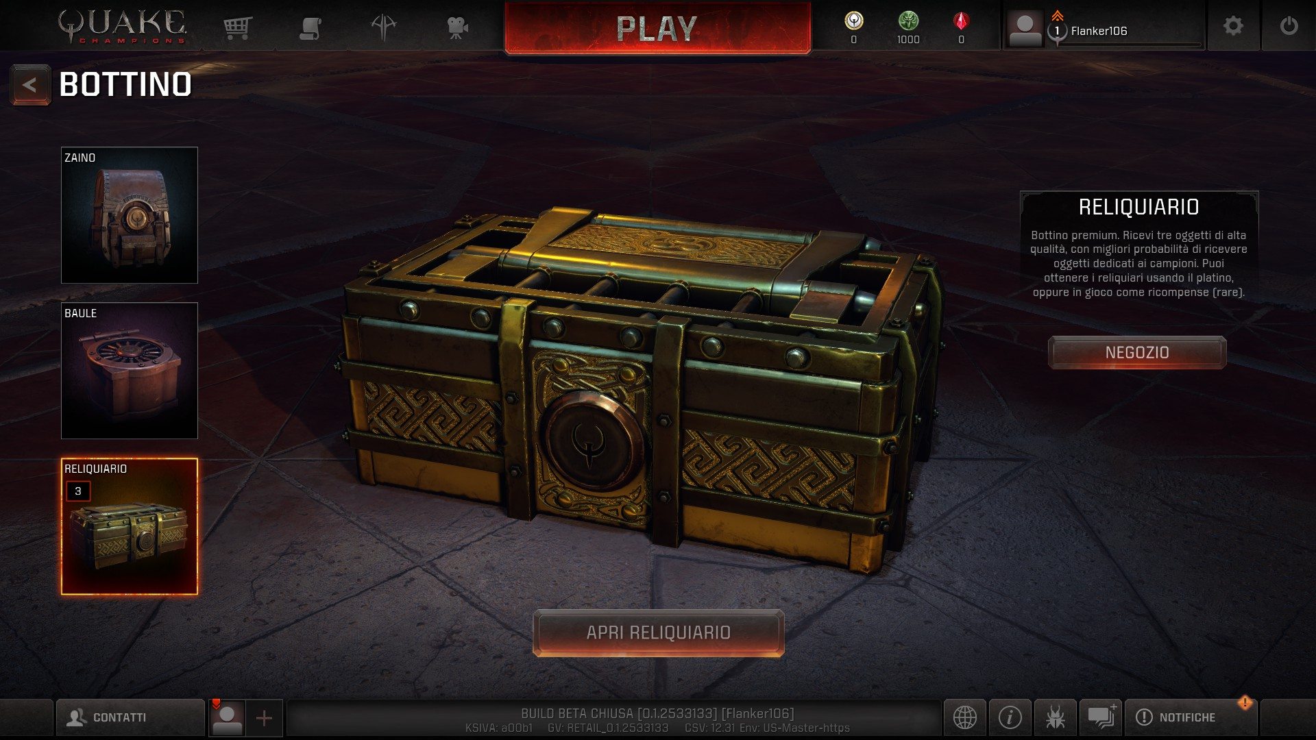 -3 reliquiari (bottino che contiene elementi di gioco per il profilo, campioni e personalizzazioni per le armi, inclusi skin, shader, emblemi e altro).