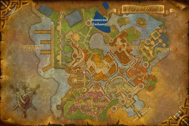 Stormwind ed Orgrimmar sono pressochè identiche tranne che per un piccolo particolare, le ambasciate. Dentro questi edifici è possibile trovare i capi delle due fazioni:
