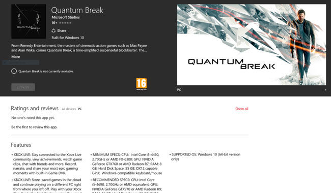 Quantum Break sullo store di Windows 10 ma non si può comprare