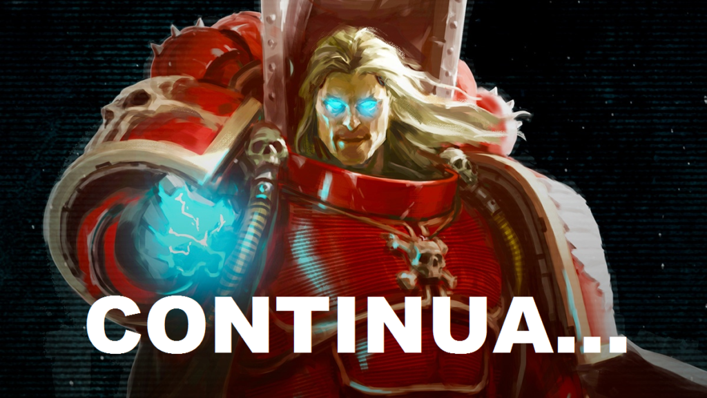 “La Lama Petrific non è mai stata un modo per salvarmi dalla distruzione, Antros. Il potere di Sanguinius non può essere temprato. Non sono destinato alla salvezza, ma sono destinato a salvare il nostro Capitolo. Provare d’essere degni eredi di Sanguinius. Non ho bisogno di controllare il Dono, ho bisogno di vivere abbastanza da scatenarlo nel posto giusto. E ora ho una mappa.”