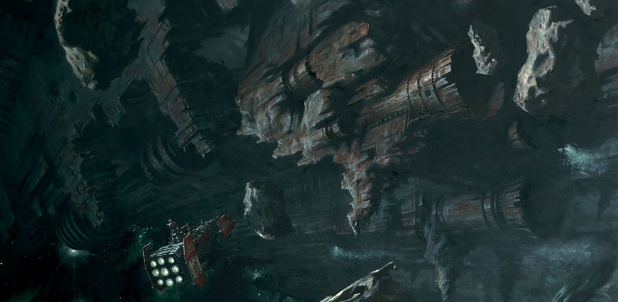 Spazio e tempo presero una nuova prospettiva, tutte le emozioni drenate dalla sua anima. Era senza tempo, senza fine, immortale. Uno tra incommensurabili miliardi, una particella in un uragano di menti. Fugace, eppure eternamente rinato. La mente alveare lo collegò ad altri concetti, condividendo i suoi pensieri, la sua fame, il suo istinto di riproduzione e crescita. Eppure non erano i suoi pensieri. Erano alieni. Calistarius non riusciva a percepire dove finisse lui e dove iniziasse la mente della nidiata. Si sforzò di resistere. Si sentì strattonato all’angolo della propria personalità, un grande faro psionico che abbagliava in ogni direzione. Era come l’Astronomican che usava per guidare le navi attraverso il Warp, eppure molto più debole e osceno. Era un tumore, ora piccolo, ridotto dalle morti subite dalla nidiata. Realizzò che lontano, nelle profondità dello spazio, vi erano altri fari oscuri, altre menti della nidiata. E qualcosa di più grande. Qualcosa che ingoiava tutto ciò che si trovava sul proprio sentiero. Qualcosa che il genere umano non aveva mai visto prima. Impossibilmente distante e impossibilmente antico. Un’ombra nel Warp.