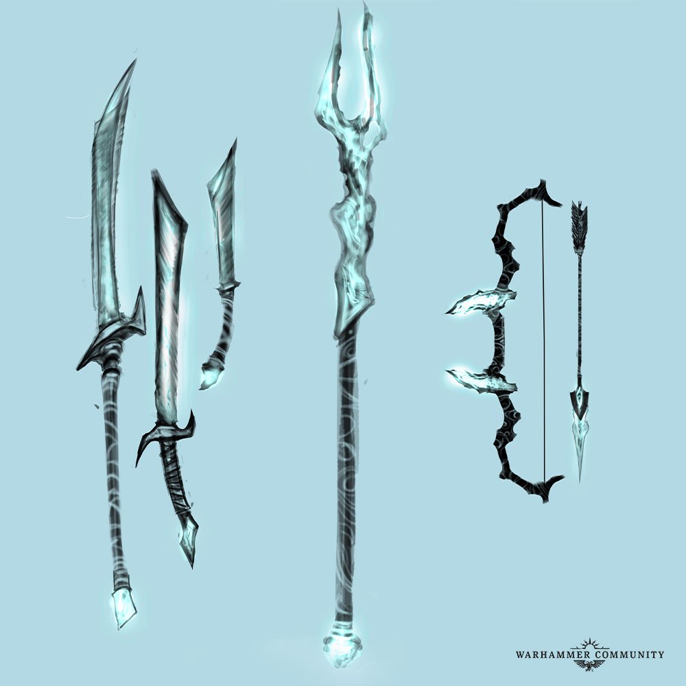 Warhammer Community ha mostrato anche due immagini dell’equipaggiamento portato dalla Guardia Glaciale. Vediamo come armi e scudi abbiano componenti glaciali, segno di incantamenti simili alle Lame Gelate, ossia spade di ghiaccio che le Streghe possono far apparire nelle proprie mani. Ciò che ancora non sappiamo per certo è se questa Guardia Glaciale svolga a tutti gli effetti la funzione di guardia del corpo della Regina di Ghiaccio attualmente presente (trovandoci nell’Era dei Tre Imperatori, non stiamo parlando della Zarina Katarin Bokha, ma di un’altra Regina di Ghiaccio), ma è probabile che sia così.