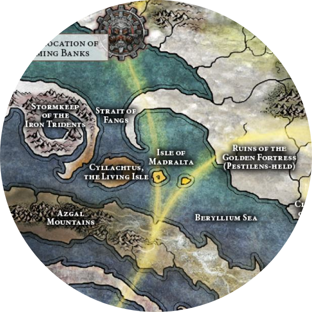 Reduci da un altro evento disastroso, le popolazioni di Azgal, Sigyorn, Patina, Prosperis e del Flusso Viscido si riunirono in un conclave formato dai loro migliori etermanti sperando di poter trovare una soluzione definitiva. Nove rappresentanti si unirono per raggiungere l’ormai noto Covo del Grifone e si disposero secondo una stella rituale a nove punte in modo da lanciare un potente incantesimo di trasmutazione. Il rituale parve riuscire, ma la sua conclusione scatenò una gigantesca valanga che seppellì otto etermanti su nove sotto un’ondata di chamonite fusa. Il nono incantatore, abbandonando il proprio camuffamento e rivelandosi essere il Re Osservatore, uno dei nove Gaunt Summoner, fuggì su un disco demoniaco verso la propria Torre d’Argento situata nell’estremo ovest. Nonostante le perdite, l’incantesimo fu realmente portato a termine e il corpo della bestia divina si tramutò in oro, ponendo fine alla maledizione magnetica del Fulcro Spirale. Le popolazioni furono felici di rivedere in funzione tutti gli strumenti rimasti inattivi per molto tempo, eppure si dovettero subito preparare ad affrontare nuove, tremende difficoltà.